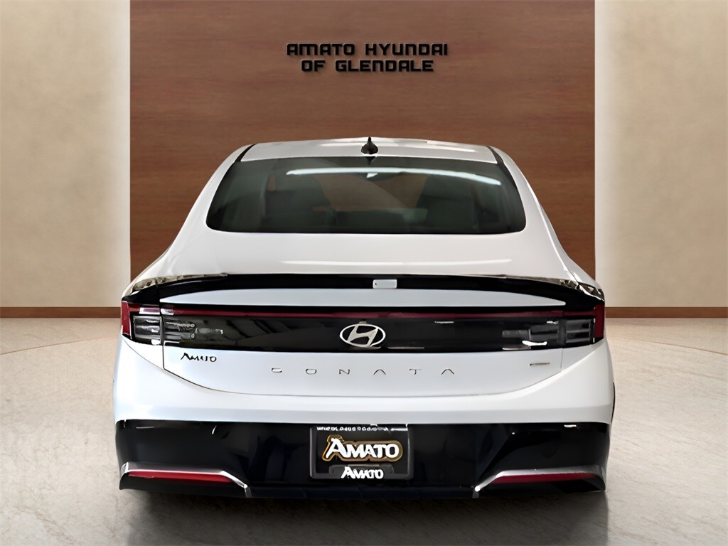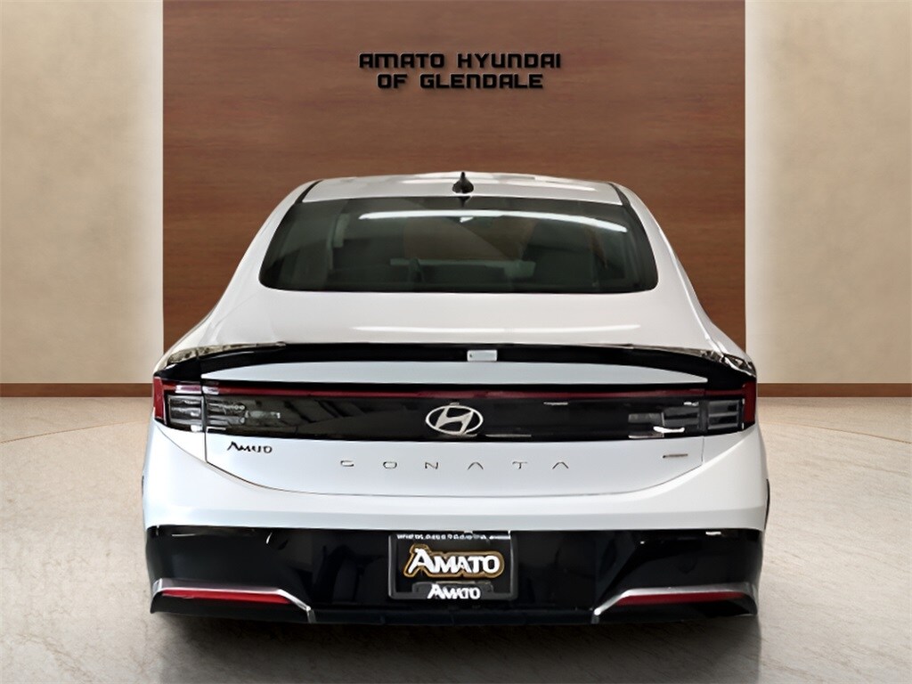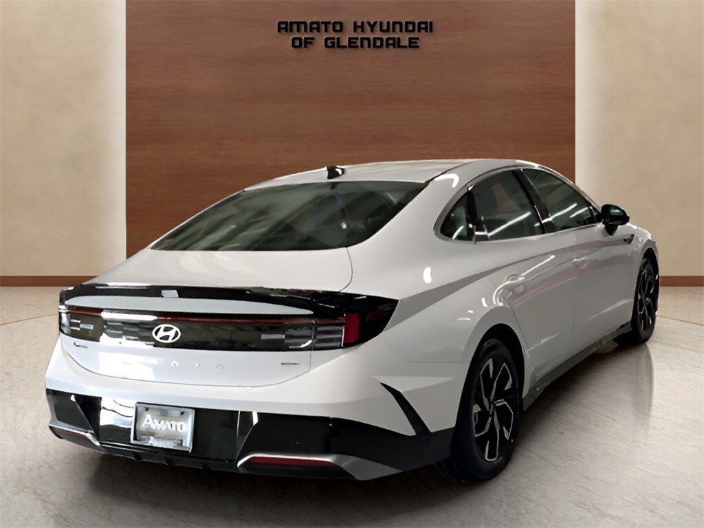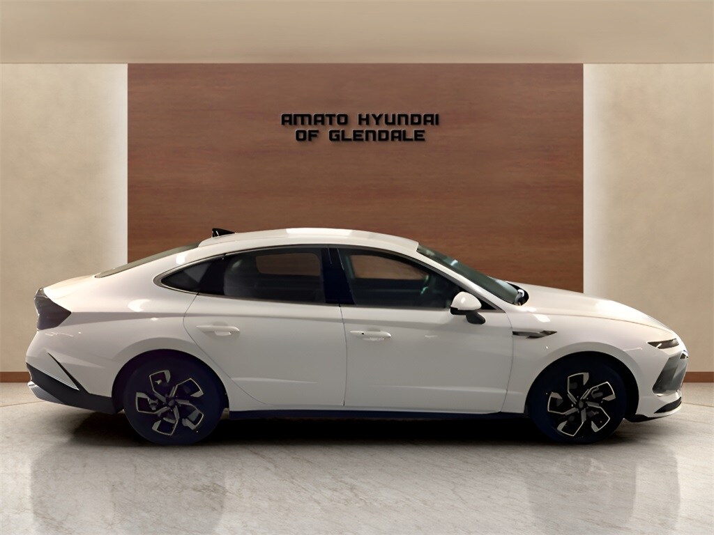 Certified. Serenity White 2025 Hyundai Sonata SEL AWD 8-Speed Automatic I4 Black Cloth.