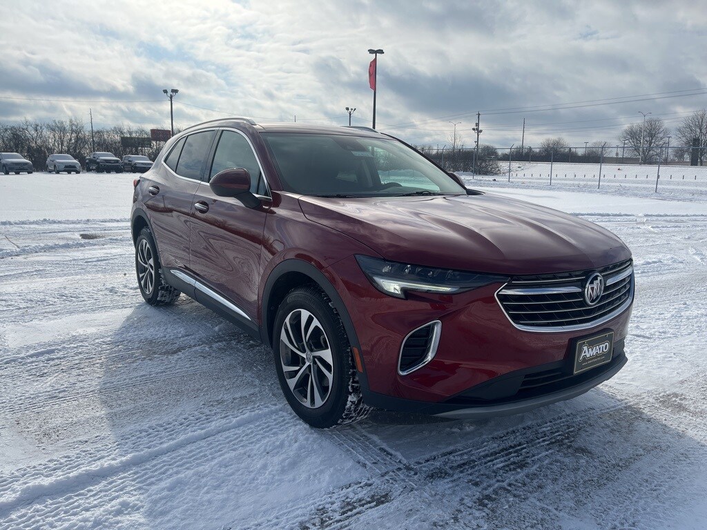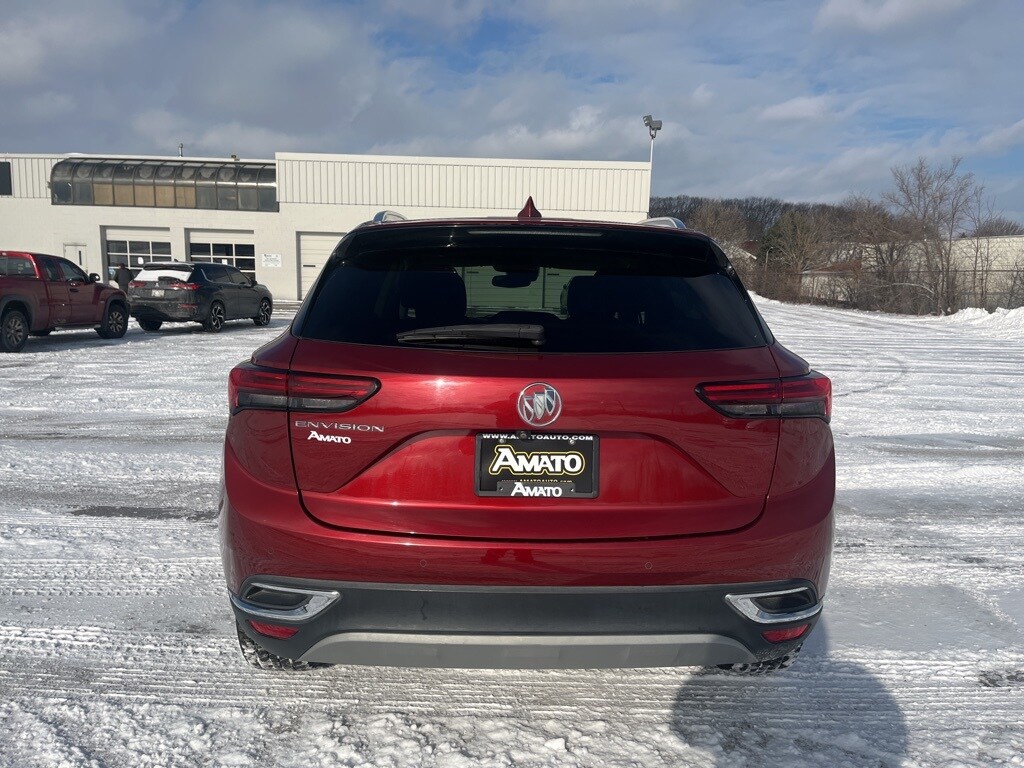 Warranty Forever is included for free with the purchase of this Cinnabar Metallic 2023 Buick Envision Essence FWD 9-Speed Automatic 2.0L Turbocharged **ACCIDENT FREE VEHICLE HISTORY REPORT**, **ONE OWNER**, 7-Speaker Audio System Feature w/Amplifier, 8-Way Power Driver Seat Adjuster, Air Conditioning, Apple Car Play/Android Auto, Emergency communication system: OnStar and Buick connected services capable, Following Distance Indicator, Forward Collision Alert, Front Bin Center Console USB Ports, Front Bucket Seats, Front dual zone A/C, Fully automatic headlights, Heated door mirrors, Heated front seats, Heated steering wheel, IntelliBeam Headlamp Control w/Auto High Beam, Lane Keep Assist w/Lane Departure Warning, Low tire pressure warning, Memory seat, Perforated Leather-Appointed Seat Trim, Power door mirrors, Power Liftgate, Power windows, Radio: Buick Infotainment System AM/FM Stereo, Rear window wiper, Remote keyless entry, Security system, SiriusXM Radio, Steering wheel mounted audio controls, Telescoping steering wheel, Tilt steering wheel, USB Charging-Only Ports, Variably intermittent wipers, Wheels: 18" Machined Aluminum w/Light Silver Met.