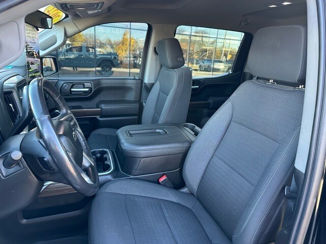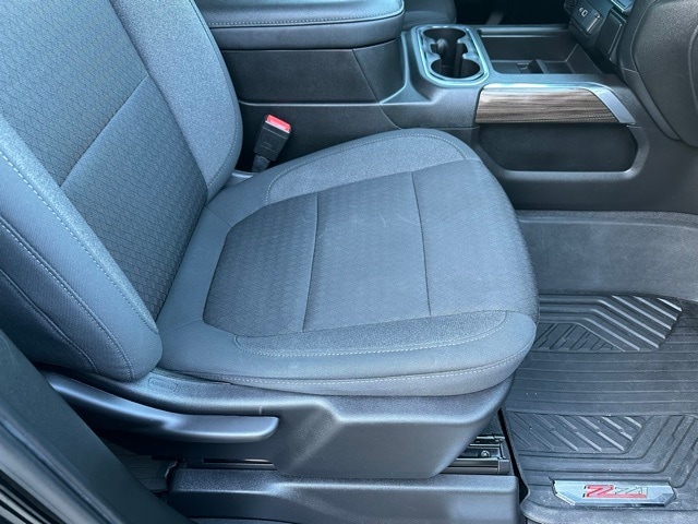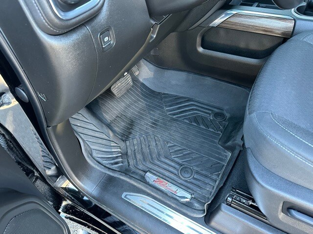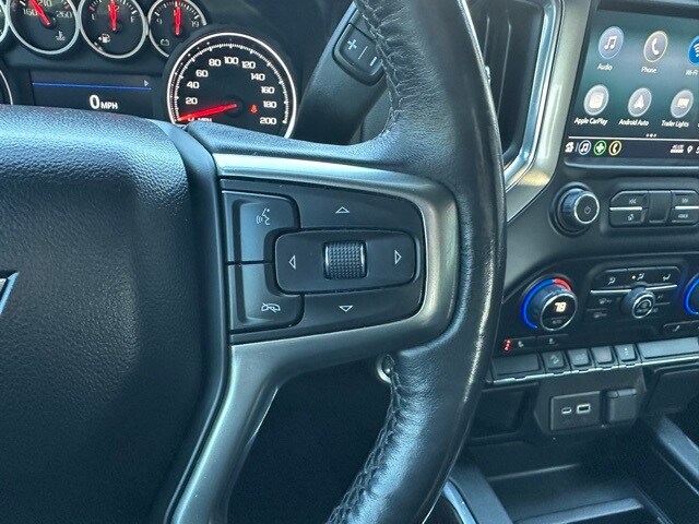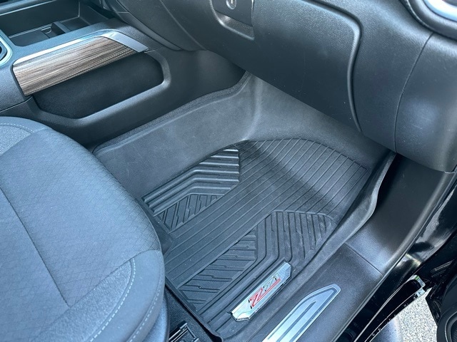 Inside, the Silverado is equipped for comfort and everyday use. You get keyless open and start, remote start, a leather-wrapped steering wheel, rear air vents, and a color driver information display. The Chevrolet Infotainment 3 system provides an 8-inch touchscreen with Bluetooth, Apple CarPlay, Android Auto, and 4G LTE Wi-Fi capability. Floor liners with the Z71 logo, multiple USB ports including second-row charge ports, memory settings for the driver seat and mirrors, and power windows with express functions add convenience. This truck blends off-road capability with modern usability and strong V8 performance.
