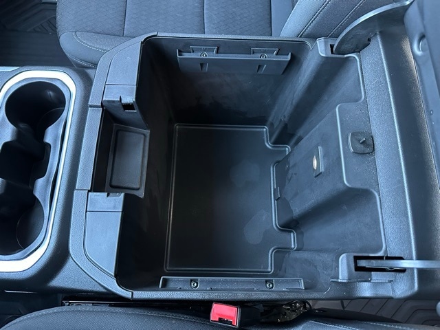 The exterior has a bold, blacked-out look with 18" gloss black aluminum wheels, red recovery hooks, LED headlamps with signature daytime running lights, LED fog lamps, and LED taillamps. The powered tailgate with lift assist makes loading easier, and the spray-on Chevtec bedliner along with rear wheelhouse liners help protect the truck from wear. Dark Essentials package accents the badging for a clean, stealth appearance.