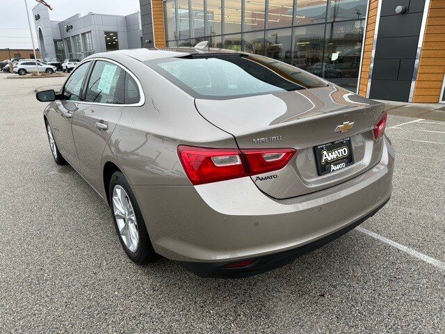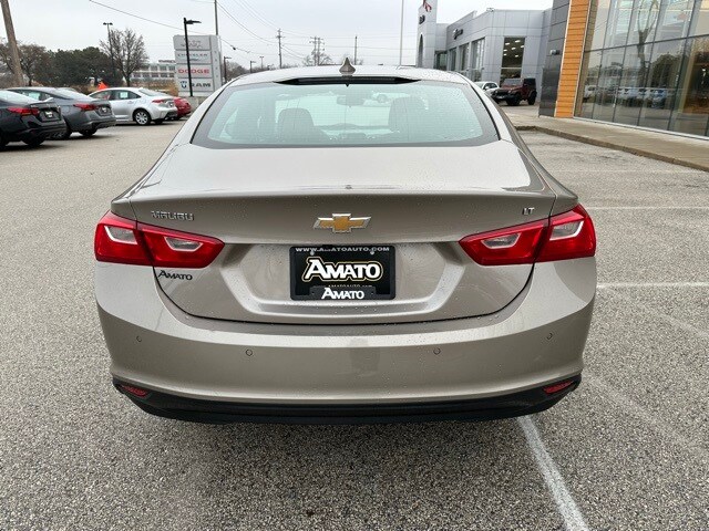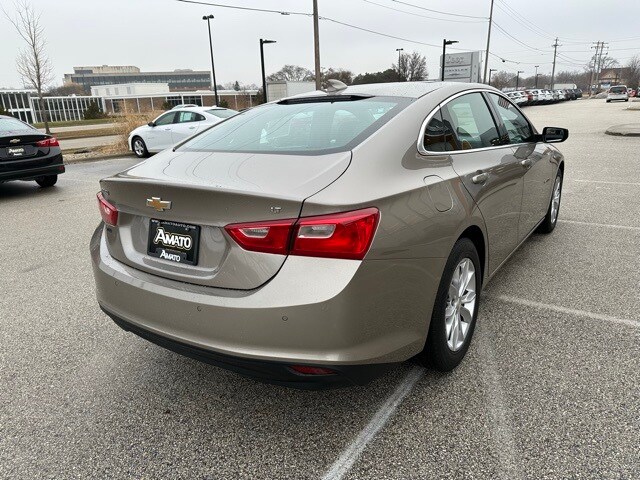 Safety and driver-assistance features include HD Rear Vision Camera, StabiliTrak stability control with traction control and brake assist, 10 airbags, tire pressure monitoring, rear seat reminder, Teen Driver technology, LATCH child seat anchors, rear child safety door locks, and electronic parking brake. This Malibu LT combines refined styling, modern technology, and practical comfort in a well-rounded midsize sedan.