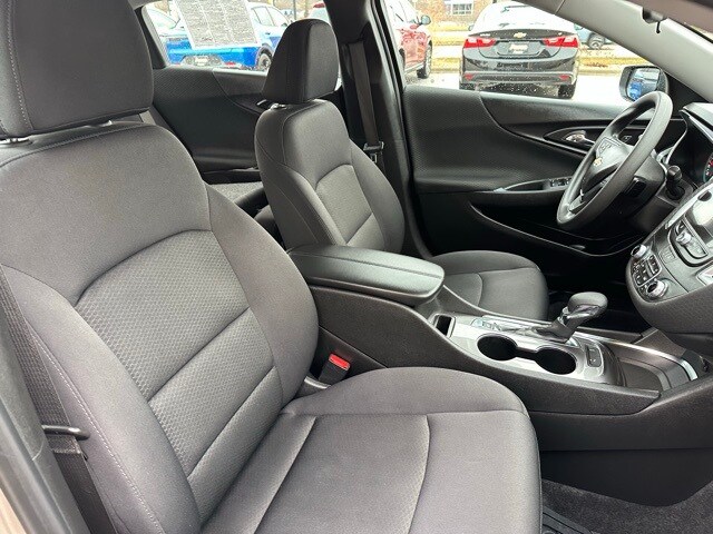Inside, the Malibu offers premium cloth front bucket seats with heated driver and front passenger seating, an 8-way power driver seat with power lumbar, and a 6-way manual front passenger seat. The rear seat features a 60/40 split-folding design with a center armrest and cupholders. Comfort is supported by dual-zone automatic climate control, rear air vents, a cabin air filter, and a remote vehicle start system with keyless start.