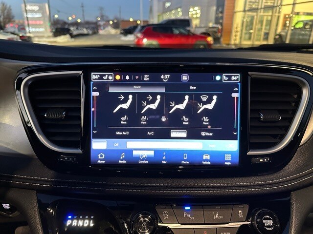 Inside, the Pacifica Limited surrounds passengers with upscale comfort and intelligent design. The spacious cabin features luxurious Nappa leather seating, heated and ventilated front seats, heated second-row seating, a heated TechnoLeather steering wheel, and power-folding third-row seating for flexible cargo solutions. The Uconnect 5 Nav system with a 10.1-inch display, integrated Wi-Fi hotspot, smart device compatibility, ambient lighting, and the SiriusXM Guardian suite create a connected and user-friendly environment. Added conveniences like remote start, a conversation mirror, multiple storage solutions, and HomeLink garage access complete the high-end interior experience.