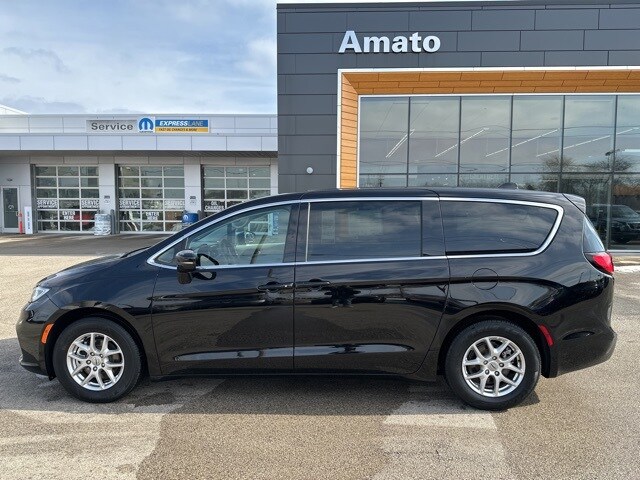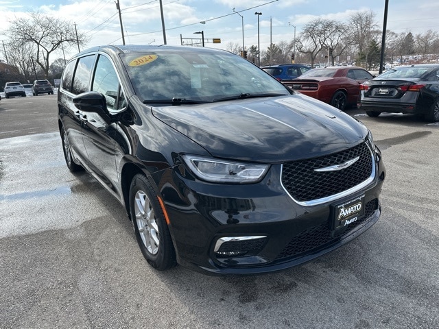 This 2024 Chrysler Pacifica Touring L is finished in Diamond Black Crystal Pearlcoat with a Black/Alloy/Black interior and is powered by a 3.6L V6 engine paired with a 9-speed automatic transmission and front-wheel drive.