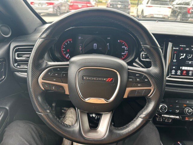 Inside, the Durango SXT offers cloth bucket seats, heated front seats, a heated steering wheel, leather/metal-look steering wheel, and 3 12V power outlets. Entertainment and connectivity are handled by Uconnect 4 with an 8.4" display, Apple CarPlay, Android Auto, SiriusXM, and dual LCD monitors for the front passengers, keeping everyone connected and entertained on the road.