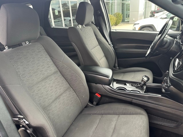 Safety is comprehensive, with dual-stage front and side airbags, curtain airbags for all rows, rear cross-path detection, blind spot monitoring, tire pressure monitoring, and ParkView back-up camera. Practical touches like cargo space lights, concealed storage, and full carpet floor mats make the Durango SXT AWD a well-rounded SUV for both comfort and functionality.