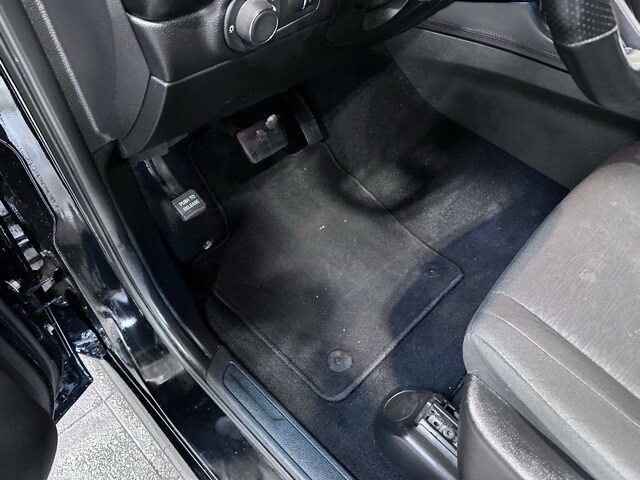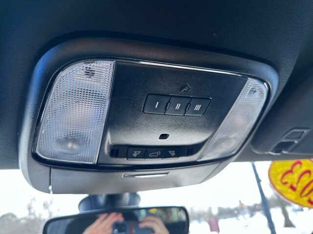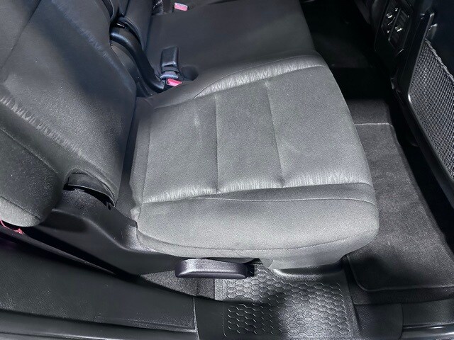 Inside, the cabin is designed for comfort and functionality with heated front cloth bucket seats, red accent stitching, a heated leather-wrapped steering wheel, and tri-zone-style airflow supported by an auxiliary rear heater. The driver information center, digital speedometer, compass, outside temperature display, and auto-dimming rearview mirror keep key information easily visible. Flexible seating includes a fold-flat second row and a 50/50 split third-row seat that folds into the floor, providing adaptable passenger and cargo space.