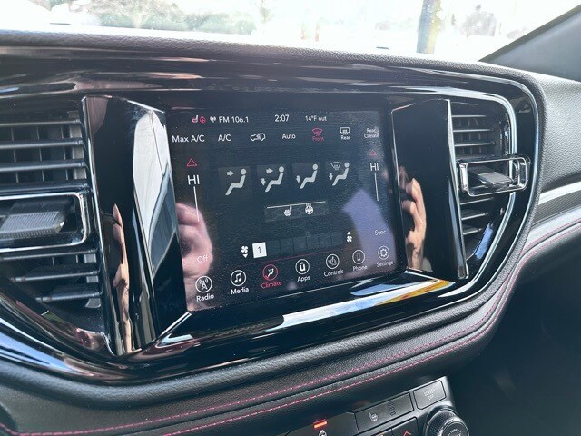 Safety is well covered with blind spot monitoring, rear cross path detection, rear collision mitigation, ParkView rear backup camera, ParkSense rear parking sensors with stop, side impact beams, multiple airbags covering all three rows, a driver knee airbag, tire pressure monitoring, and rear child safety locks, helping provide confidence for both daily driving and longer trips.