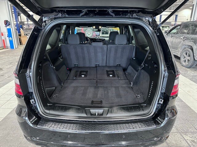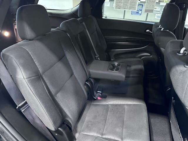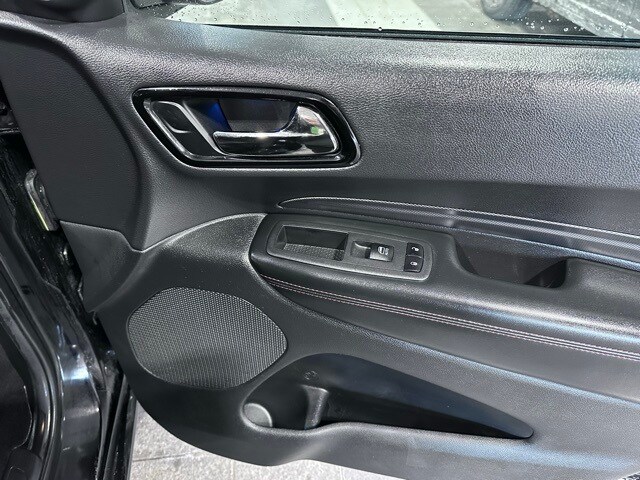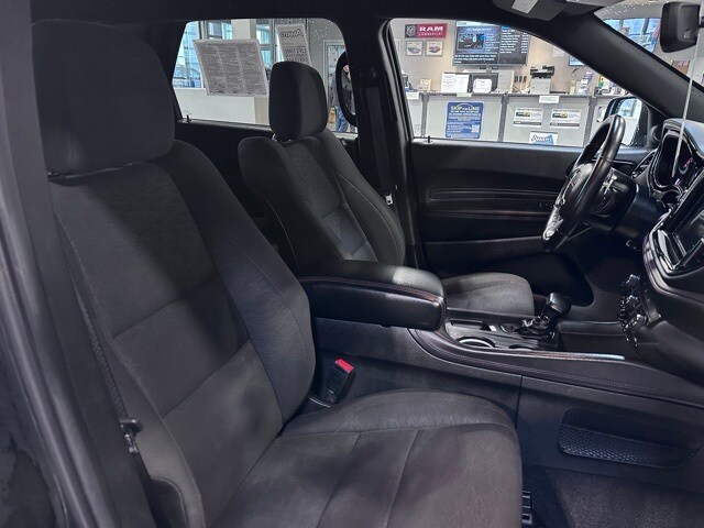 The exterior presents a bold and athletic look with LED low- and high-beam headlights, LED brakelights, a black grille, gloss black heated power mirrors, body-colored bumpers and door handles, deep-tinted glass, a rear lip spoiler, and a power liftgate for added convenience. Riding on 20-inch fine silver wheels with all-season tires, this Durango also includes perimeter approach lighting, laminated glass, a rear window wiper and defroster, and a compact spare tire stored underbody.