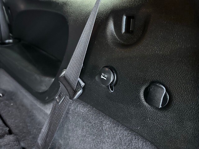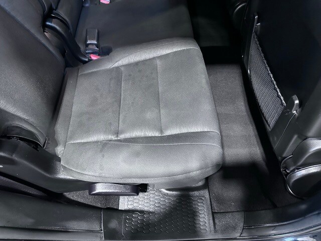 Inside, the cabin is designed for comfort and functionality with heated front cloth bucket seats, red accent stitching, a heated leather-wrapped steering wheel, and tri-zone-style airflow supported by an auxiliary rear heater. The driver information center, digital speedometer, compass, outside temperature display, and auto-dimming rearview mirror keep key information easily visible. Flexible seating includes a fold-flat second row and a 50/50 split third-row seat that folds into the floor, providing adaptable passenger and cargo space.