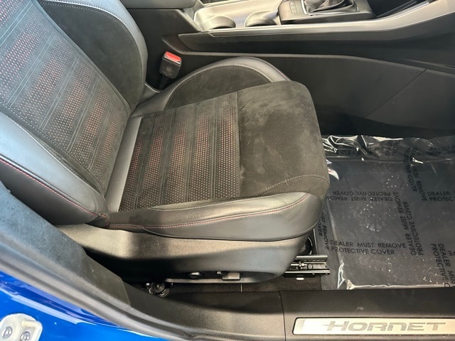 Inside, the Hornet R/T surrounds you with premium comfort and technology. The Alcantara sport seating, power-adjustable front seats with lumbar support, and a heated steering wheel create a performance-ready cockpit feel. A 10.25-inch Uconnect 5 touchscreen, Apple CarPlay/Android Auto, 4G LTE Wi-Fi hotspot, and a digital driver information center ensure you stay connected and informed. Dual-zone climate control, an auto-dimming mirror, ambient lighting, and a rigid cargo cover elevate everyday usability with thoughtful touches throughout the cabin.