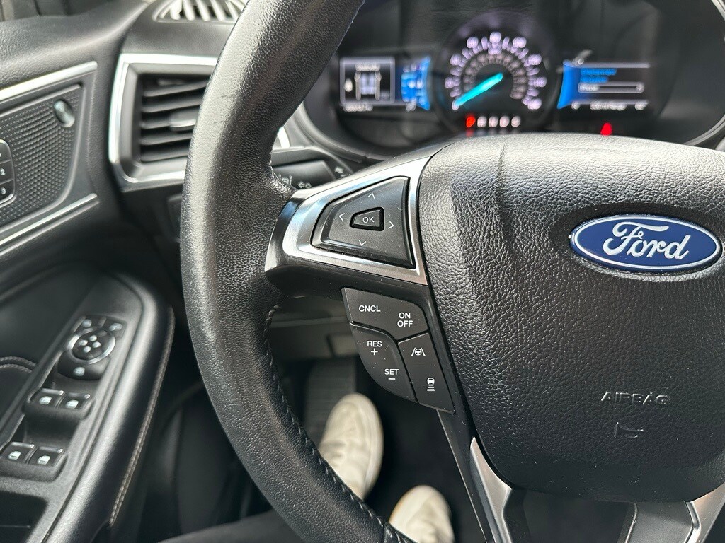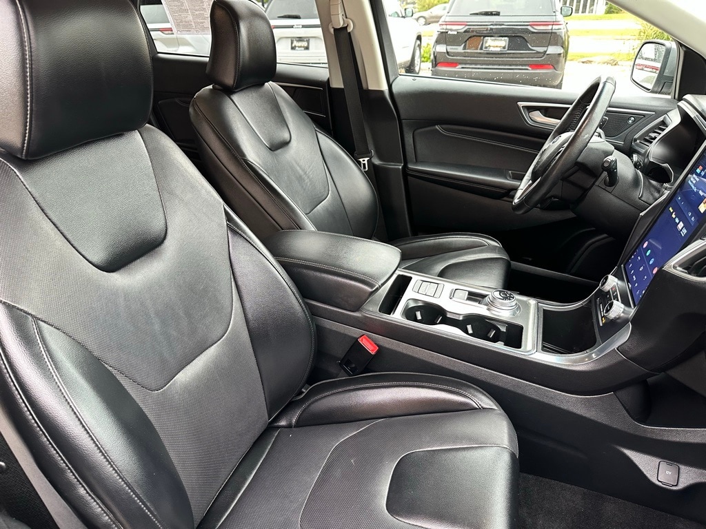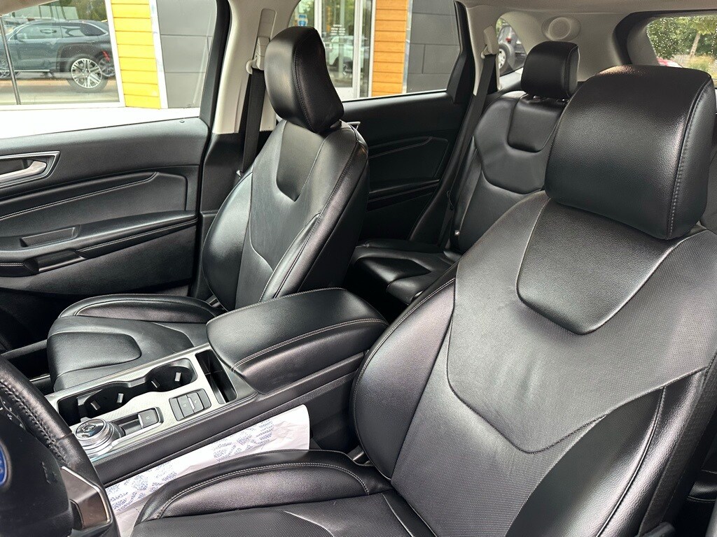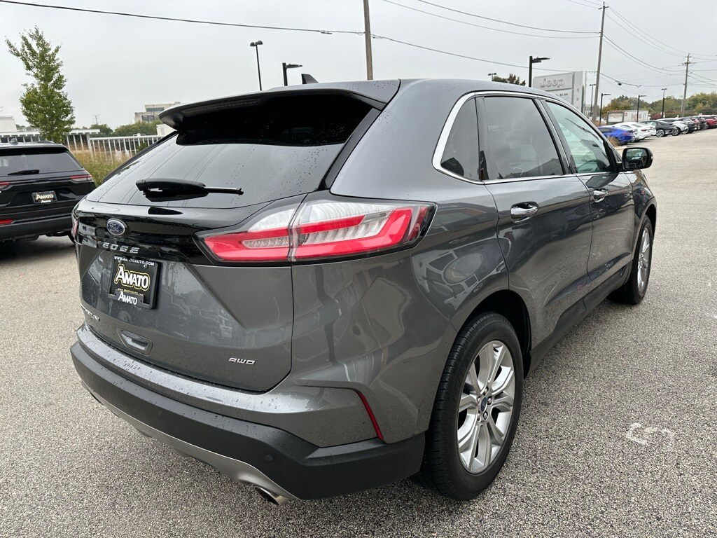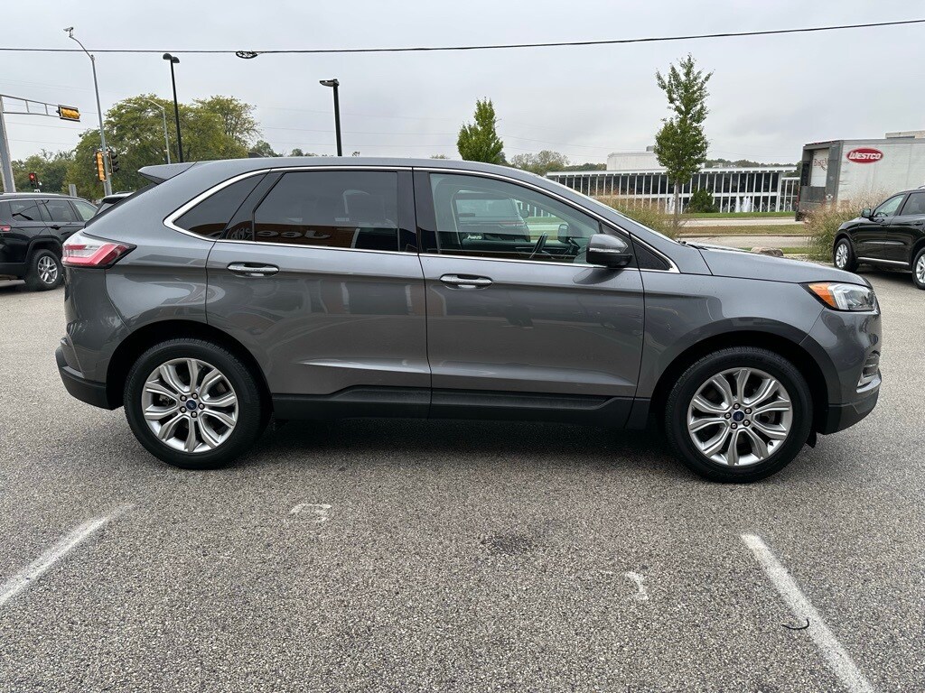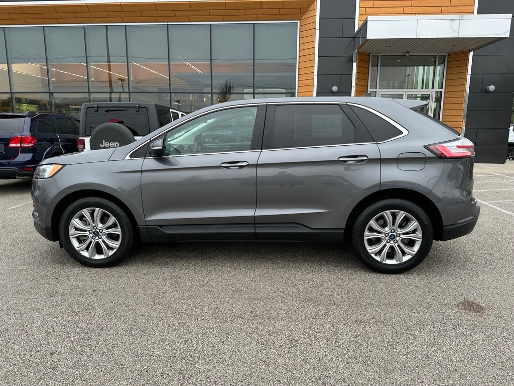 Powering the Edge Titanium is a Twin-Scroll 2.0L EcoBoost I-4 engine paired with an 8-speed automatic transmission and intelligent all-wheel drive, providing responsive performance and efficiency at 21 MPG city / 28 MPG highway. A sport-tuned suspension and precise electric power steering ensure a smooth, controlled ride.