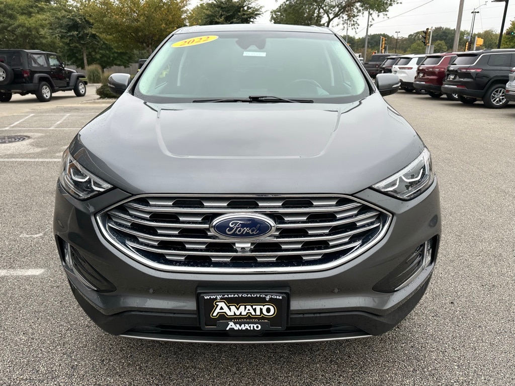 The 2022 Ford Edge Titanium AWD combines modern styling, premium comfort, and advanced technology in a midsize SUV. Finished in Carbonized Gray, it features sleek lines, a bold chrome grille, adaptive LED headlamps, and a hands-free power liftgate. With its confident stance and all-wheel-drive capability, the Edge is designed to handle both city streets and weekend getaways.