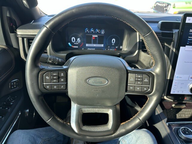 Technology takes center stage with SYNC 4 and a 15.5-inch touchscreen, navigation, Apple CarPlay/Android Auto, a Bang & Olufsen B&O Unleashed sound system with 22 speakers, and a 360-degree camera with trailer reverse guidance. Additional conveniences include power running boards, a panoramic sunroof, heated and ventilated seats, and multiple charging outlets throughout the cabin to keep everyone connected.