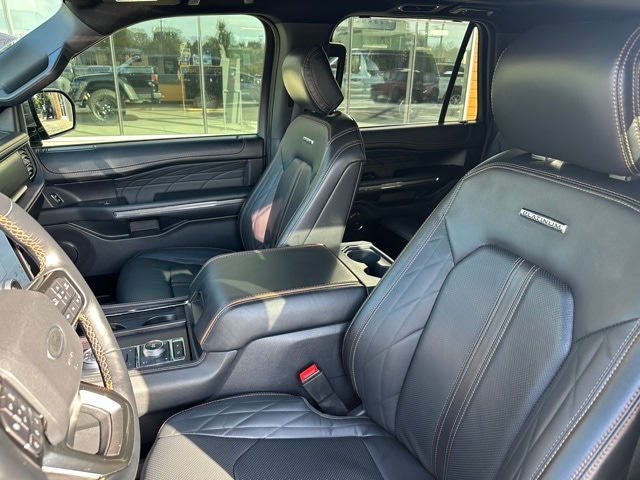 The 2022 Ford Expedition Max Platinum 4x4 is a full-size SUV built for families who want maximum space, advanced technology, and refined luxury. Finished in Agate Black, it has a bold, upscale presence highlighted by a chrome grille, polished aluminum wheels, and a confident stance. Inside, the cabin is appointed with Black Onyx leather-trimmed seats and premium wood/metal-look accents that create a modern and comfortable environment.