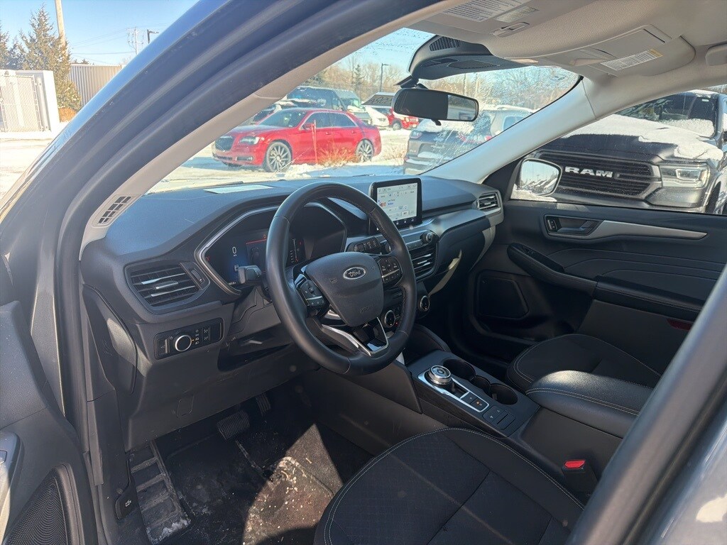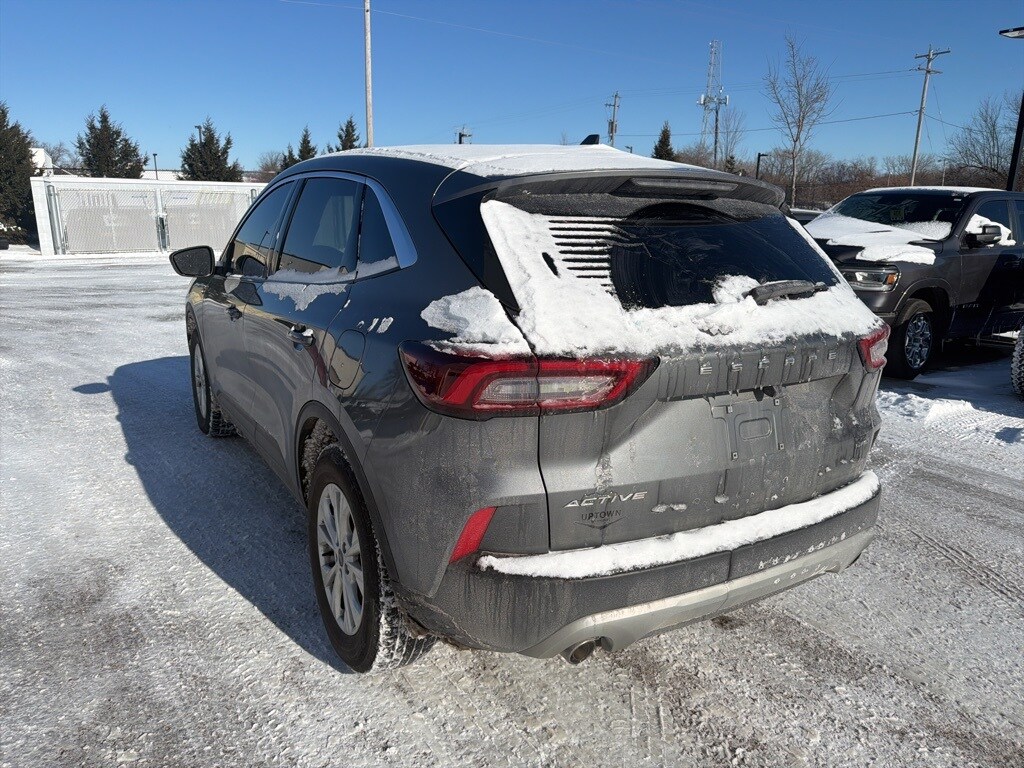 On the outside, the Escape Active rides on 17-inch Shadow Silver painted aluminum wheels wrapped in all-season tires and features a black grille with chrome accents, body-colored front bumper, black rear bumper accents, and black bodyside cladding. LED brake lights, automatic high-beam headlights, deep-tinted glass, perimeter approach lighting, and a power liftgate add both style and convenience. A rear window wiper and defroster, variable intermittent wipers, and a rear spoiler round out the exterior.