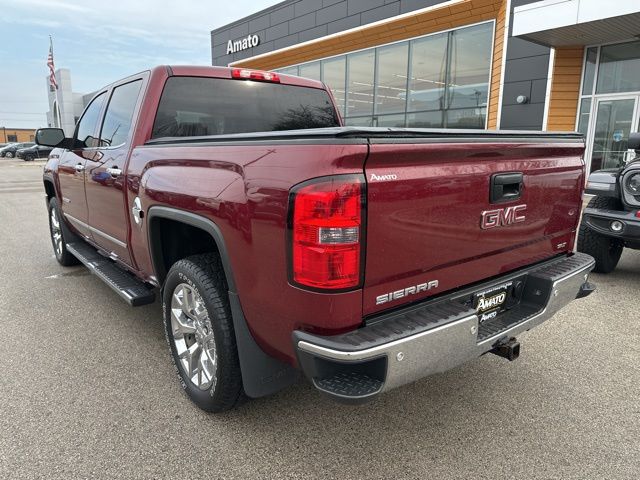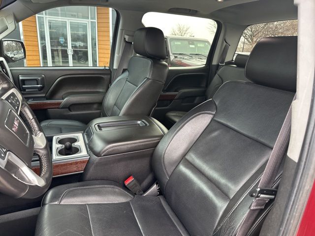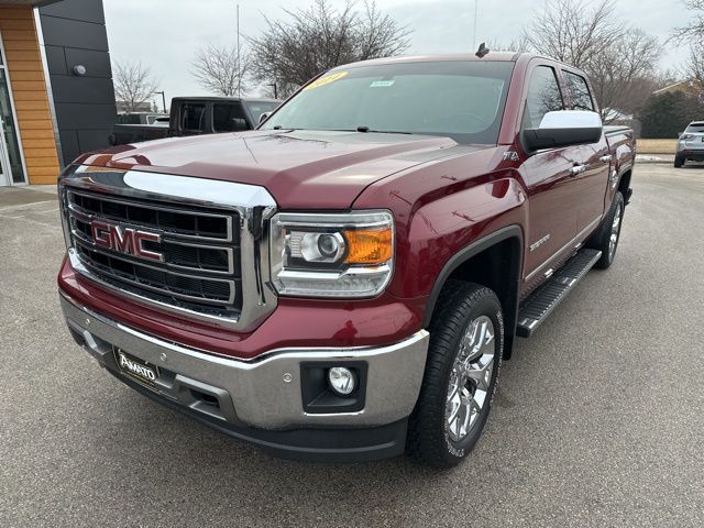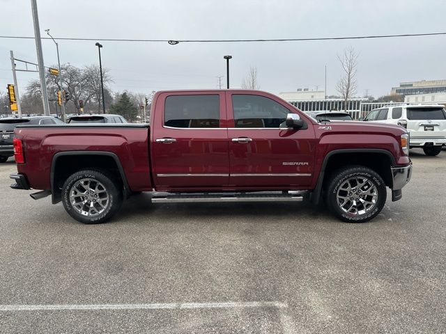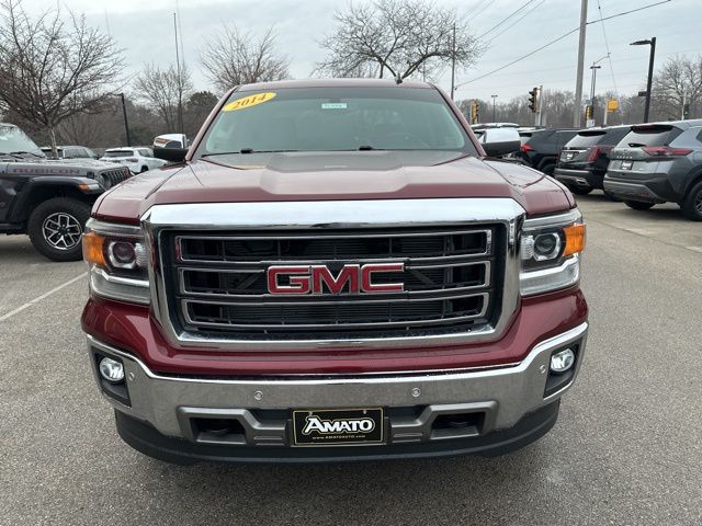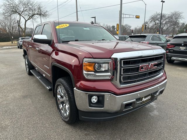 This 2014 GMC Sierra 1500 SLT Crew Cab 4WD is finished in Sonoma Red Metallic with a Jet Black interior and powered by a 5.3L EcoTec3 V8 with Active Fuel Management, direct injection, and variable valve timing. Its paired with an electronic 6-speed automatic transmission with overdrive and a 4x4 system with an electronic Autotrac transfer case, giving it the strength and versatility you expect from a full-size pickup.