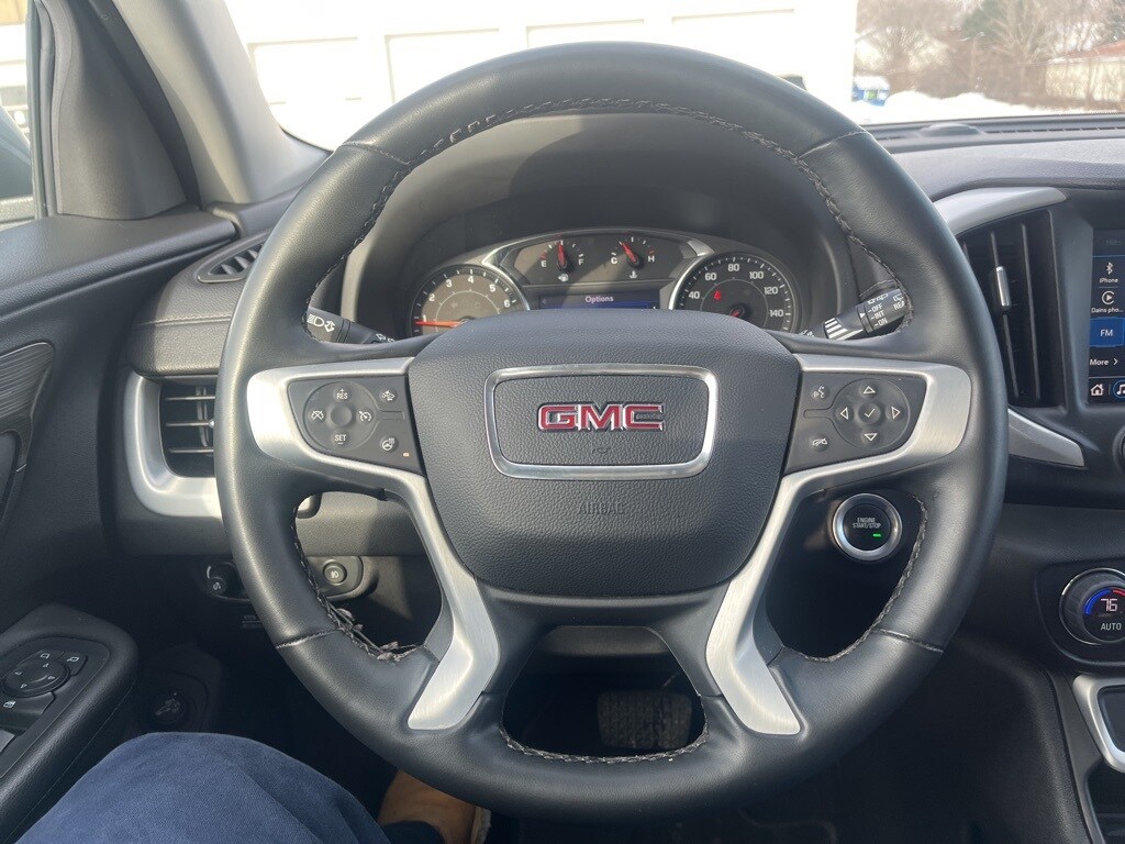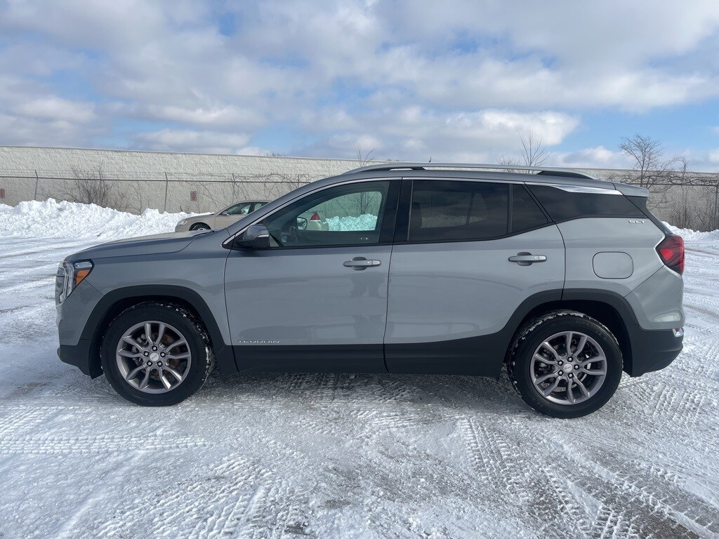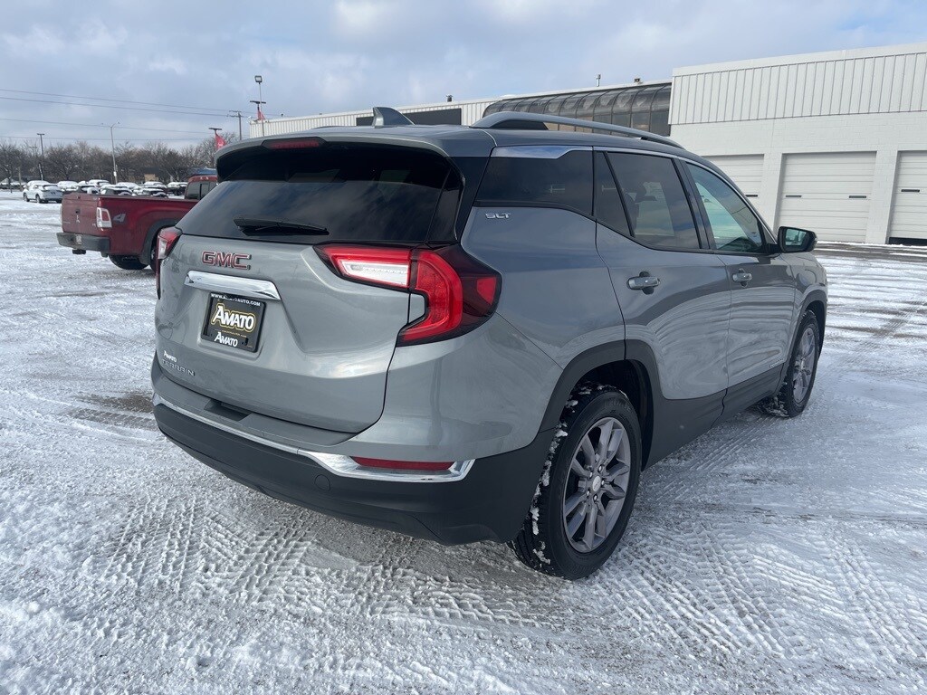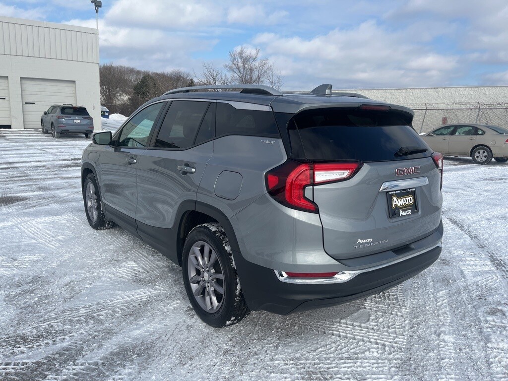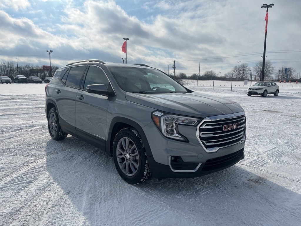 Sterling Metallic 2023 GMC Terrain SLT FWD 9-Speed Automatic 1.5L DOHC **ACCIDENT FREE VEHICLE HISTORY REPORT**, **ONE OWNER**, 2 USB Data Ports, 2 USB Data Ports w/SD Card Reader, 6-Speaker Audio System Feature, 8-Way Power Driver Seat Adjuster, Air Conditioning, Apple Car Play/Android Auto, Auto High-beam Headlights, Bluetooth® For Phone, Emergency communication system: OnStar and GMC connected services capable, Front Bucket Seats, Front dual zone A/C, Fully automatic headlights, Heated steering wheel, Low tire pressure warning, Power door mirrors, Power Driver Lumbar Control, Power Liftgate, Power windows, Radio: GMC Infotainment Audio System w/8" Display, Rear window wiper, Remote keyless entry, Security system, SiriusXM Radio, Speed control, Steering wheel mounted audio controls, Telescoping steering wheel, Tilt steering wheel, Turn signal indicator mirrors, Variably intermittent wipers, Wheels: 18" x 7" Silver Painted Aluminum, Wireless Apple CarPlay/Wireless Android Auto.