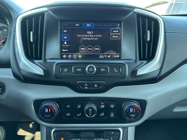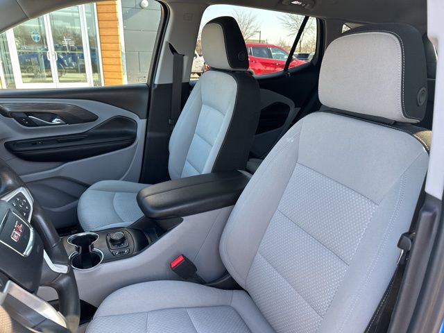 Technology highlights include the GMC Infotainment Audio System with a 7-inch touchscreen, wireless Apple CarPlay and Android Auto, Bluetooth connectivity, SiriusXM capability, a Wi-Fi hotspot, remote start, multiple USB ports, and a 6-speaker audio system. Safety features include StabiliTrak stability control, traction control, hill descent control, a rear backup camera, following distance indicator, rear seat reminder, teen driver technology, and a comprehensive airbag system. With its balanced performance, modern tech, and all-weather capability, this Terrain SLE is well equipped for daily driving and weekend travel alike.