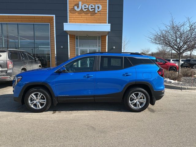 This 2024 GMC Terrain AWD SLE is finished in Riptide Metallic with a Medium Ash Gray and Jet Black interior and is powered by a 1.5L turbocharged four-cylinder engine paired with a 9-speed automatic transmission and an advanced all-wheel drive system. Designed for confident year-round driving, it delivers a smooth, efficient ride with selectable driver controls, automatic stop/start technology, and trailering capability up to 1,500 pounds.