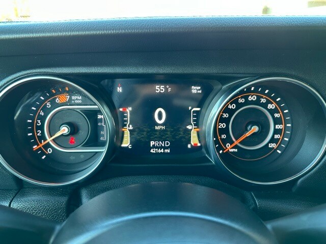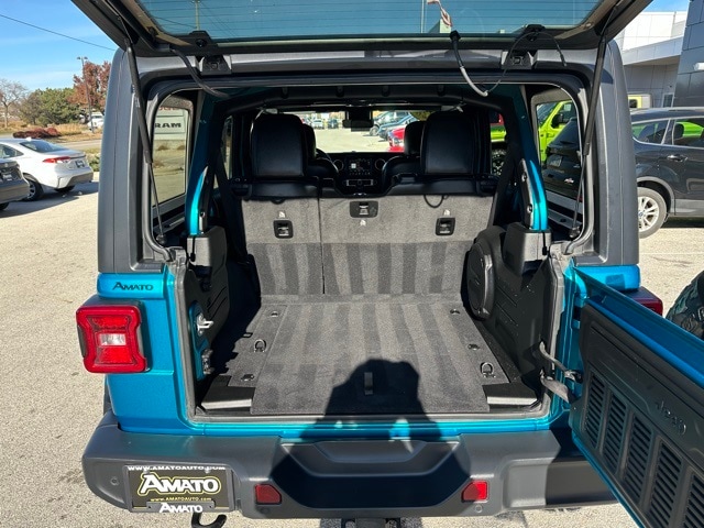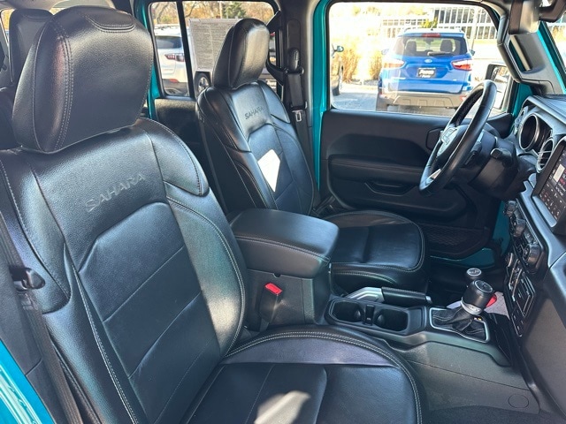 Inside, the Black leather-trimmed seats with Sahara logo, heated front seats, and heated steering wheel deliver comfort and sophistication. The cabin features modern connectivity through Uconnect 4C NAV with 8.4-inch touchscreen, Apple CarPlay, Android Auto, Alpine premium audio, and a 4G LTE Wi-Fi hotspot. Convenience and safety come standard with remote start, keyless entry, dual-zone automatic climate control, and adaptive cruise control with stop. Advanced safety systems such as Blind Spot and Cross Path Detection, ParkSense rear park assist, Full-Speed Forward Collision Warning Plus, and Hill Descent Control provide added confidence wherever you roam.