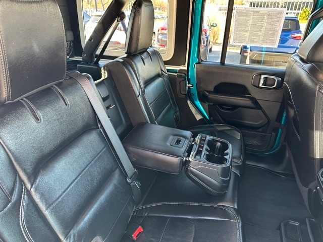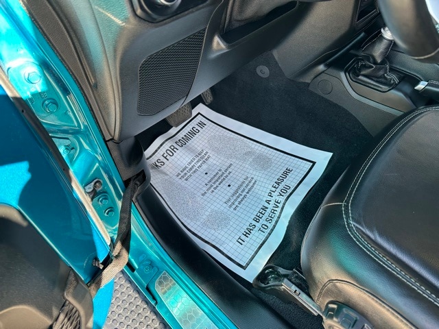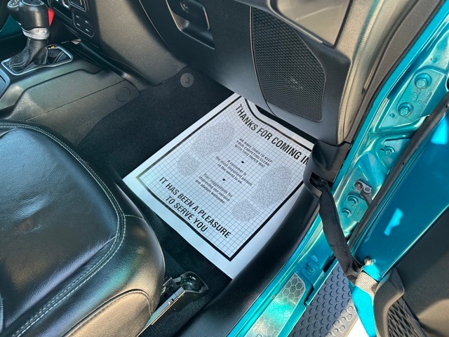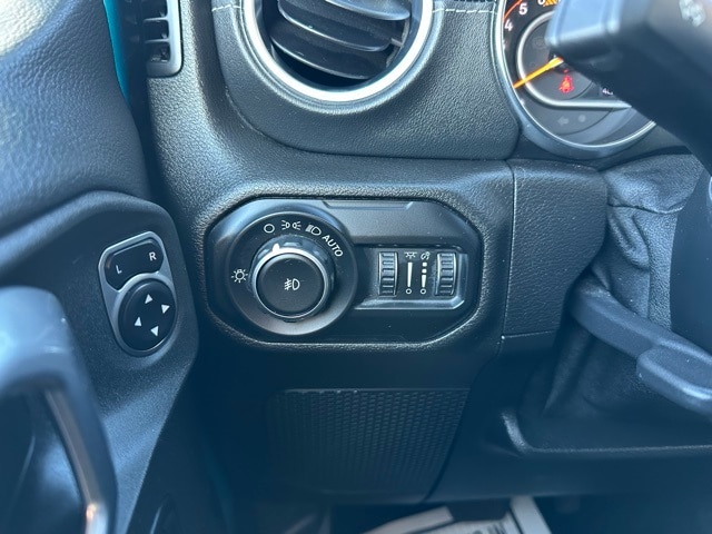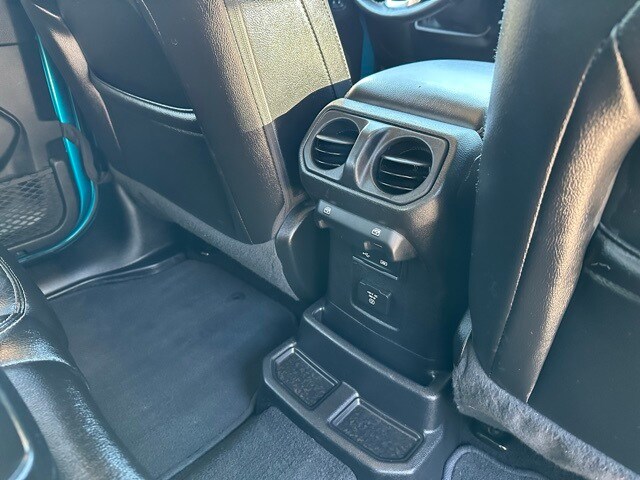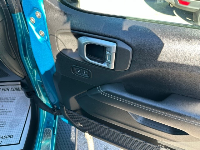 The exterior showcases the Wranglers signature design with a modern twistfeaturing 18-inch polished wheels with gray spokes, LED lighting group, body-colored fender flares, and a Black 3-piece hardtop. The Bikini Pearlcoat paint gives it a unique, eye-catching finish, while details like heated power mirrors, LED fog and reflector headlamps, and full-size spare tire enhance both style and functionality. Designed for flexibility, the removable rear window and Freedom Panel storage system make it easy to transition from city cruising to open-air adventure.