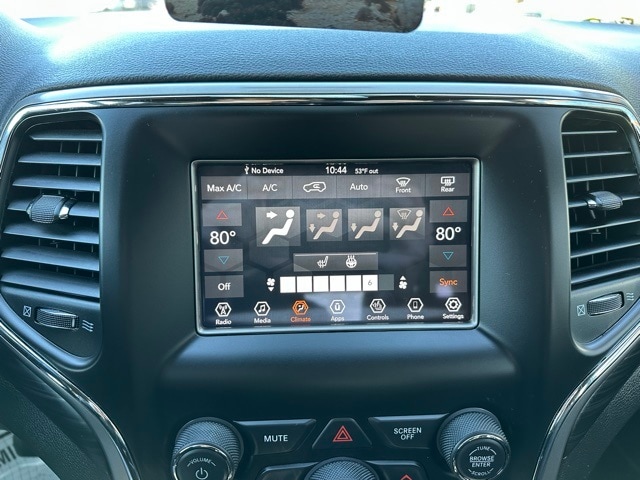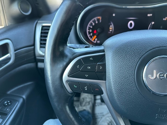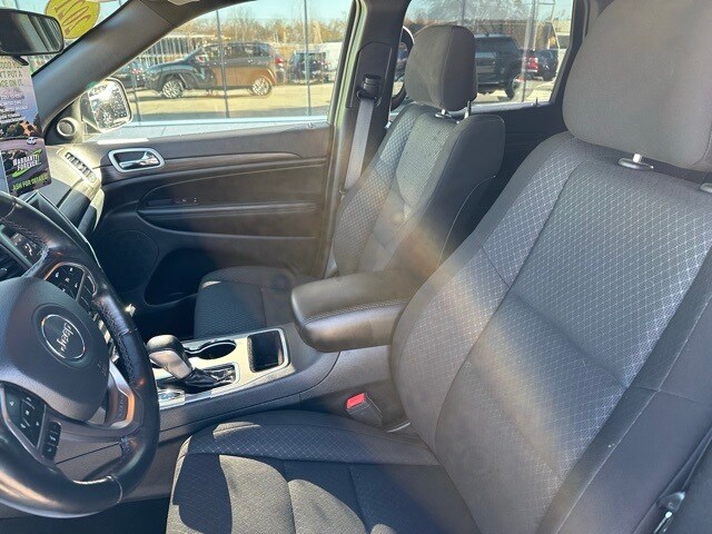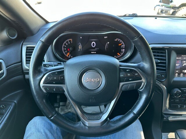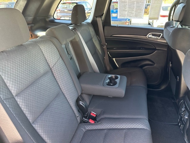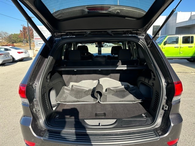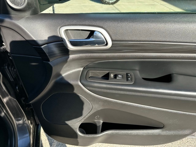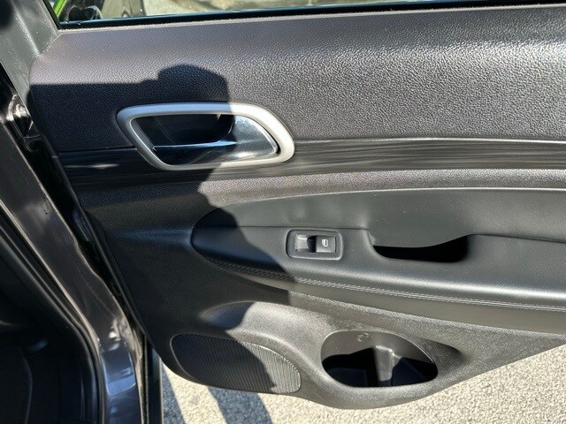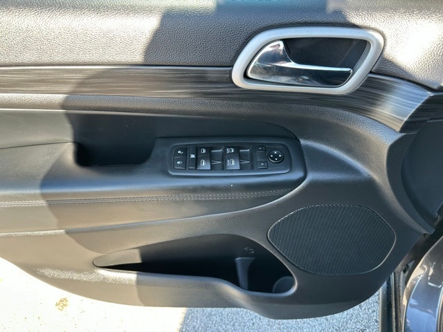 The exterior design is refined yet rugged, featuring 18-inch fine silver aluminum wheels, LED brakelights, deep-tinted glass, body-colored bumpers and mirrors, and a power liftgate for added convenience. Chrome accents along the grille and window trim add a premium touch, while roof rails and a class IV receiver hitch expand its utility. The Granite Crystal Metallic finish gives the Grand Cherokee a sleek, modern presence that stands out both in the city and on the trail.