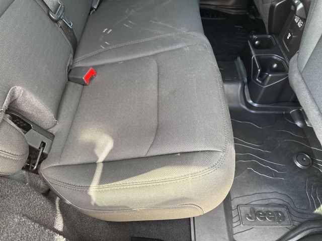 Safety features include a ParkView rear back-up camera, tire pressure monitoring system, stability and traction control, trailer sway control, advanced multistage front airbags, seat-mounted side airbags, side impact beams, and rear child safety locks. Heavy-duty components such as skid plates, anti-spin rear differential, solid axles with coil spring suspension, and rock rails reinforce its off-road capability.