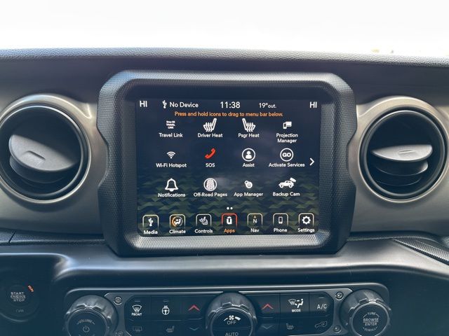 Inside, cloth low-back bucket seats are complemented by heated front seats and a heated leather-wrapped steering wheel. Automatic temperature control air conditioning with air filtering, remote start, remote keyless entry, speed-sensitive power locks, universal garage door opener, and a security alarm add everyday convenience. The Uconnect 4C Navigation system with an 8.4-inch touchscreen includes GPS navigation, Apple CarPlay, Google Android Auto, SiriusXM Satellite Radio service, integrated center stack radio, USB host flip, remote USB charge port, media hub with dual charge-only USB ports, and an Alpine premium audio system with eight speakers. A 7.0-inch TFT color driver display, 115V auxiliary power outlet, multiple 12V outlets, locking center console, locking glove box, and concealed cargo storage enhance functionality.