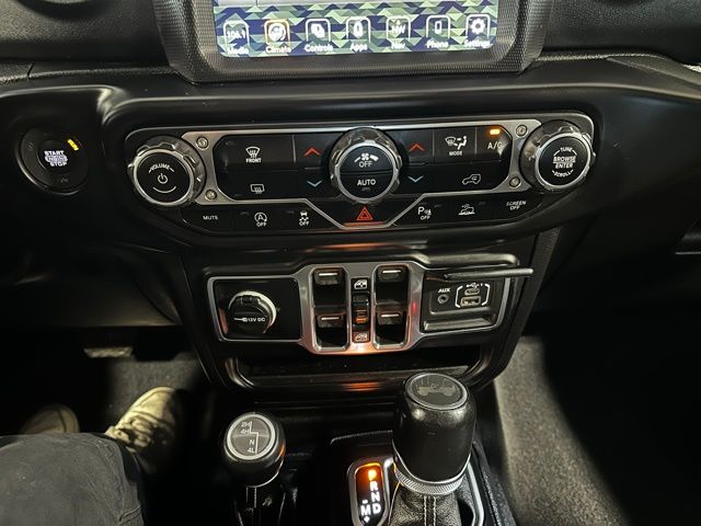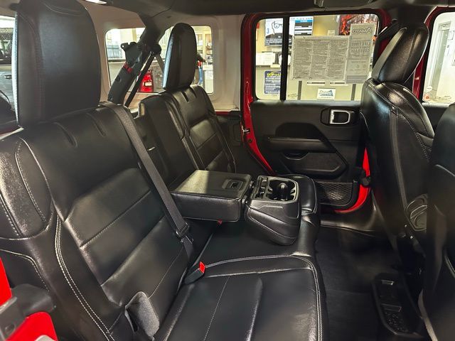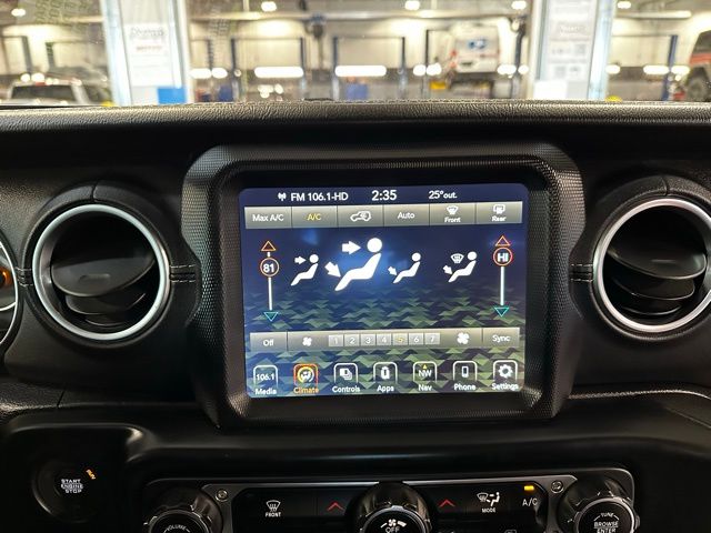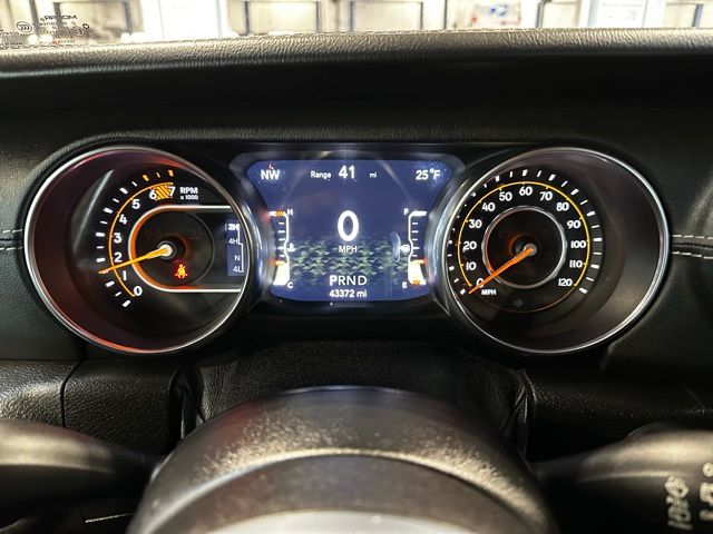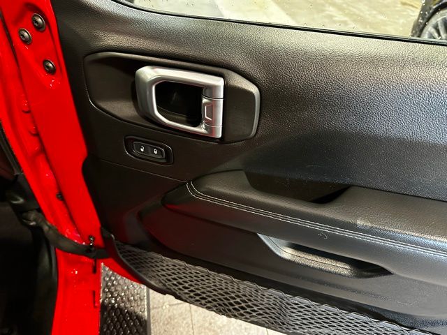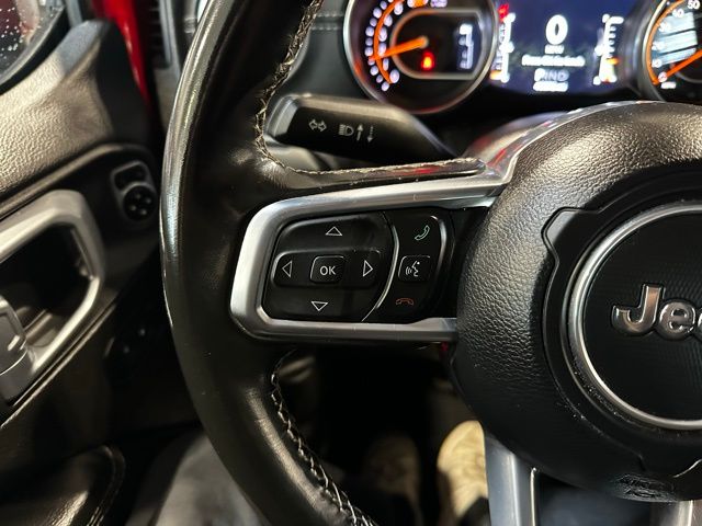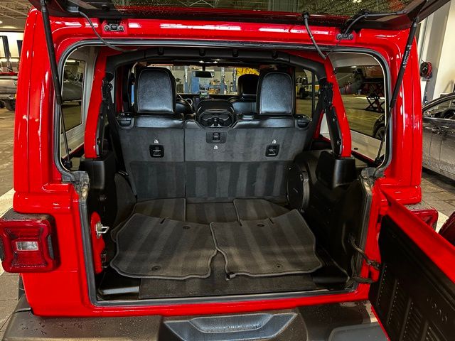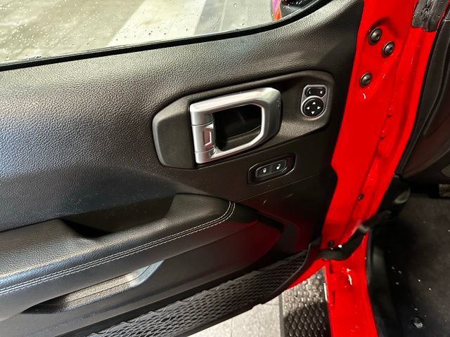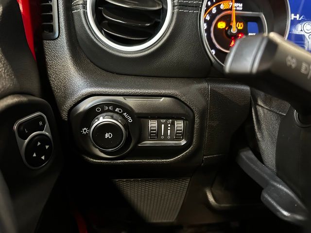 The exterior features body-color accents, 18-inch technical grey aluminum wheels with all-terrain tires, LED taillamps, deep-tinted glass, heated power mirrors, and both a Black Freedom Top 3-piece hardtop and Black Premium Sunrider soft top thanks to the Dual Top Group, giving you flexibility for any season. A full-size rear-mounted spare, swing-out rear cargo access, and rugged Jeep styling complete the look.