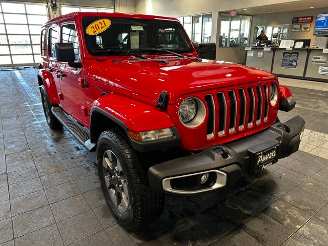 This 2021 Jeep Wrangler Unlimited Sahara 4x4 stands out in Firecracker Red with a Black interior and delivers iconic Jeep capability paired with everyday comfort. Powered by the efficient 2.0L turbocharged four-cylinder engine with stop/start technology and an 8-speed automatic transmission, this Wrangler offers confident performance on-road and off-road, supported by a part-time four-wheel-drive system, Selec-Speed Control, heavy-duty suspension, skid plates, and trailer sway control.