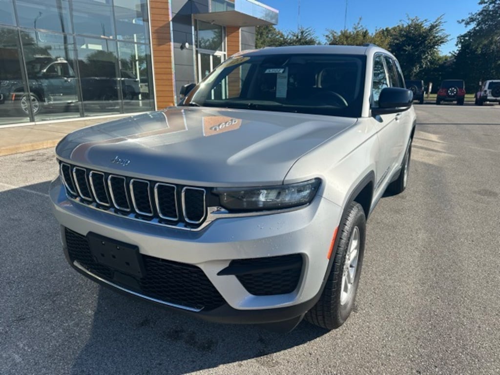 Experience the perfect balance of rugged capability and refined comfort with this 2023 Jeep Grand Cherokee Laredo 4x4. Finished in a sleek Silver Zynith Clearcoat with a Global Black interior, this SUV combines iconic Jeep styling with modern design elements like a chrome grille, LED lighting, roof rack rails, and 17" fully painted aluminum wheels. Its bold stance and attention to detail make it equally at home in the city or on the trail.