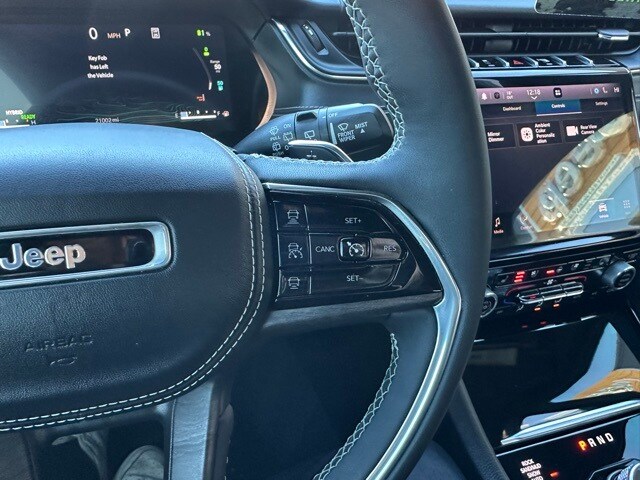 Technology highlights include Uconnect 5 navigation with a 10.1-inch touchscreen, Apple CarPlay, Android Auto, Jeep Connect connected services, 4G LTE Wi-Fi hotspot capability, and a 19-speaker high-performance audio system. Convenience features such as hands-free power liftgate, remote start, power-folding memory mirrors, and a digital rearview mirror round out the premium experience.