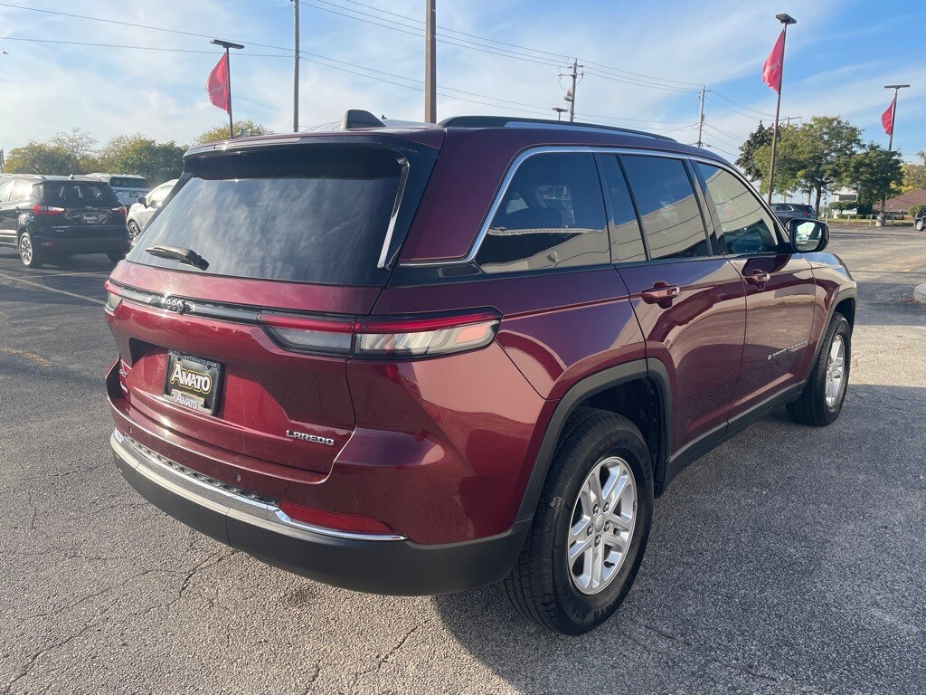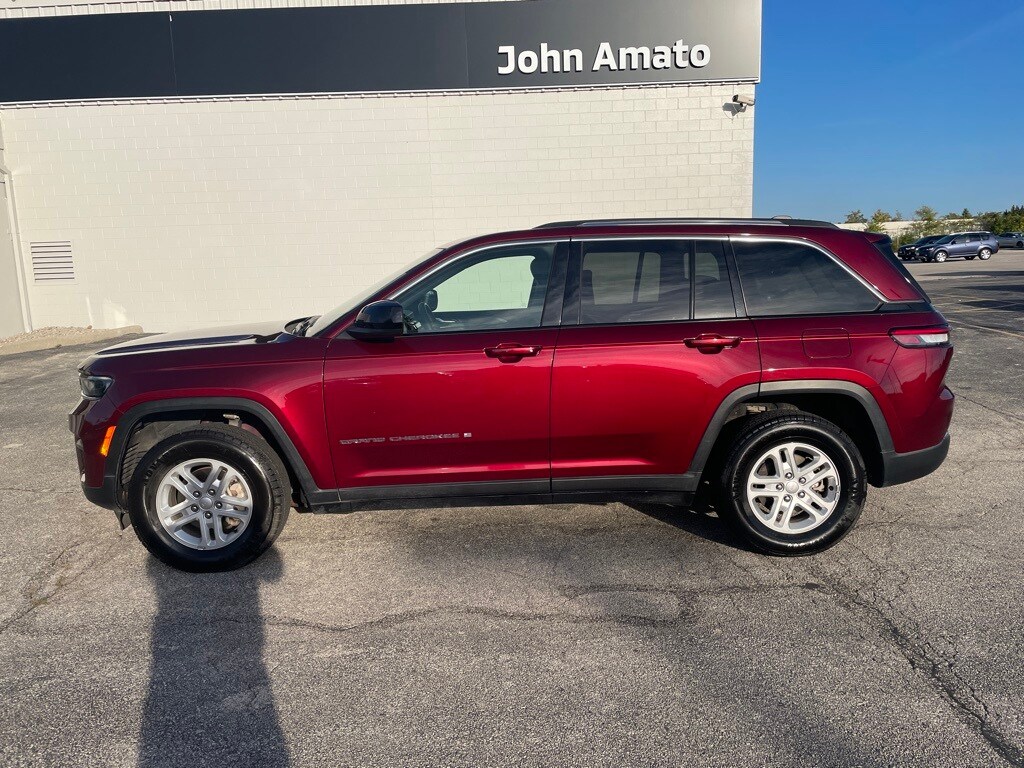 Warranty Forever is included for free with the purchase of this Velvet Red Pearlcoat 2023 Jeep Grand Cherokee Laredo 4WD 8-Speed Automatic 3.6L V6 24V VVT 4WD, **ONE OWNER**, 6 Speakers, Air Conditioning, Apple Car Play/Android Auto, Front Bucket Seats, Front dual zone A/C, Low tire pressure warning, ParkSense Rear ParkAssist with Stop BlindSpot and CrossPath Detection, ParkView Rear Back-Up Camera, Power door mirrors, Power driver seat, Power windows, QuadraTrac I 4WD System, Adaptive Cruise Control with Stop and Go, Active Lane-Management System, Full-Speed-Forward Collision Warning Plus, Radio data system, Radio: Uconnect 5 w/8.4" Display, Rear window defroster, Rear window wiper, Remote keyless entry, Security system, Steering wheel mounted audio controls, Telescoping steering wheel, Tilt steering wheel, Wheels: 17" x 6.5" Fully Painted Aluminum.