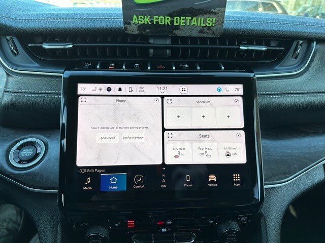 This Grand Cherokee is also equipped with Trailer Tow Prep, rear load-leveling suspension, trailer hitch zoom, and a full-size spare tire, enhancing its versatility for towing and weekend adventures. Exterior features are completed by 18-inch painted aluminum wheels, LED headlamps, and heated memory side mirrors with integrated turn signals.