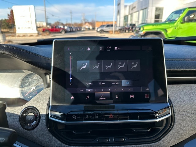 Inside, the Compass Latitude blends everyday comfort with smart technology. The cabin features premium cloth/vinyl bucket seats, a leather steering wheel, and a clean layout built around the Uconnect 5 system with a 10.1" touchscreen. Convenience features include dual 12V outlets, multiple storage spaces, illuminated cupholders, a sliding center armrest, and 60/40 folding rear seats for flexible cargo needs. Smart Device Integration, SiriusXM Guardian services, and mobile hotspot capability keep you connected, while dual-zone climate control and a full suite of soft-touch interior accents elevate the driving experience.