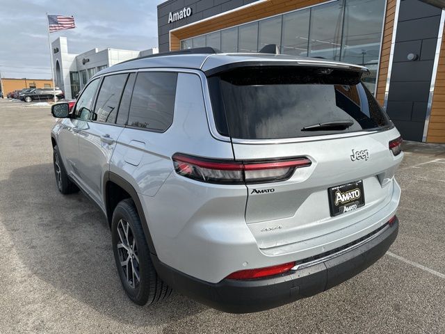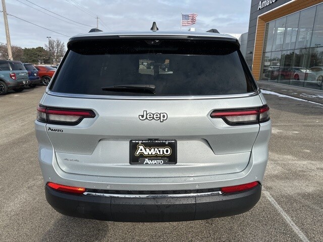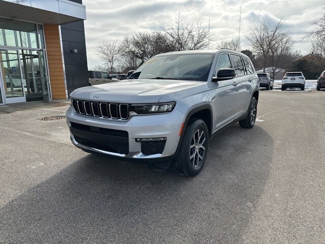 This 2024 Jeep Grand Cherokee L Limited 4x4 is finished in Silver Zynith with a Global Black interior and is powered by a 3.6L V6 engine paired with an 8-speed automatic transmission and full-time four-wheel drive. Designed for confident all-season driving, it features a refined exterior with LED headlights and taillights, automatic high beams, front fog lamps, chrome grille and window trim, roof rack rails, deep-tinted glass, a power liftgate, perimeter lighting, and 18-inch polished aluminum wheels.