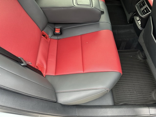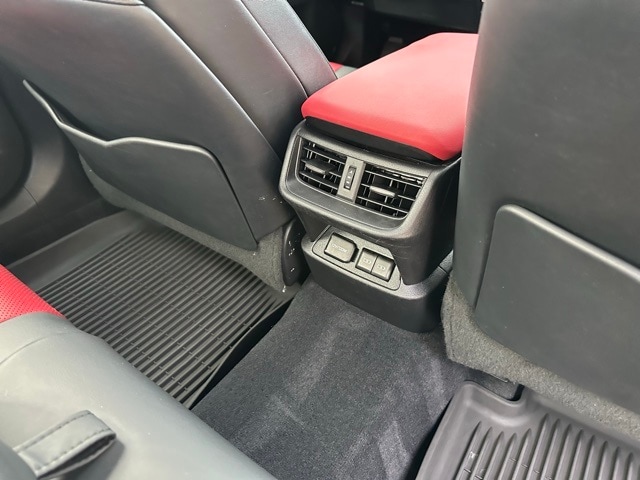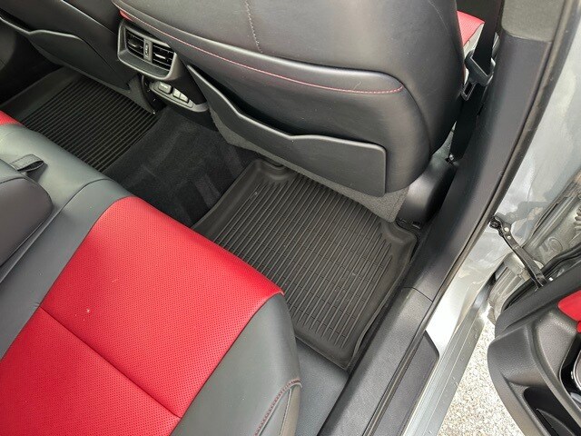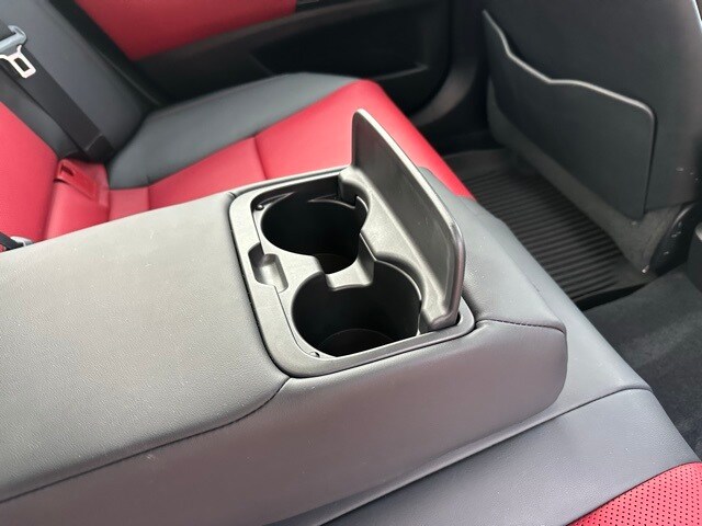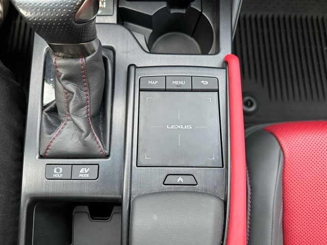 Inside, the cabin is a major highlight, finished in Circuit Red NuLuxe upholstery with Hadori aluminum trim that gives the interior a performance-inspired, upscale feel. The layout is quiet and driver-focused, with features like a heated F SPORT steering wheel, power tilt/telescoping steering column, dual-zone climate control, and wireless charging adding everyday comfort. Ambient lighting, soft-touch materials, and premium finishing keep the atmosphere calm and premium. Tech is smart and intuitive, especially with the Navigation Package, Digital driver display, Enform connectivity, and HomeLink garage transmitter all easily accessible.