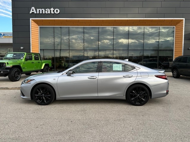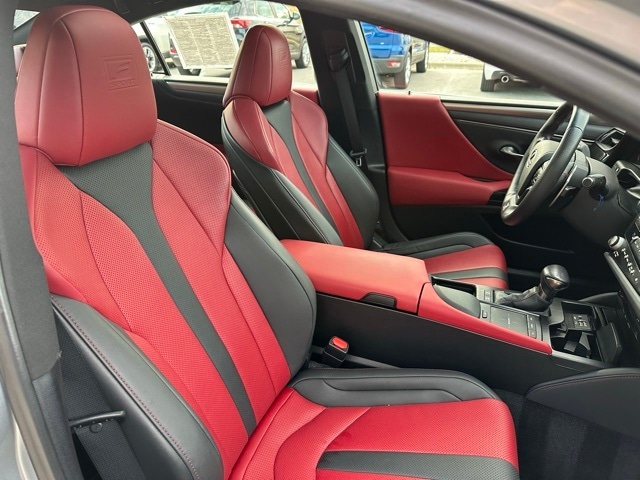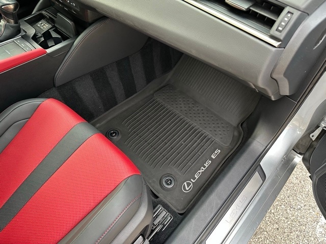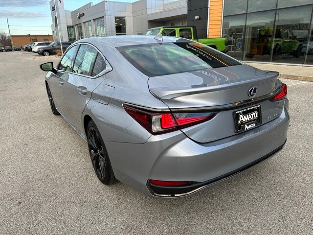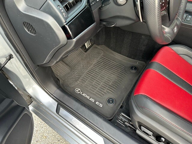 The 2022 Lexus ES 300h F SPORT in Cloudburst Gray stands out with a sleek, athletic presence that blends luxury and sport. The 19-inch gloss black split-spoke wheels, bold black grille, and F SPORT exterior detailing add a sharper edge to the ESs elegant profile. A power sunroof, LED lighting, and heated power-folding mirrors complement the clean, modern look, while the design remains refined and unmistakably Lexus.