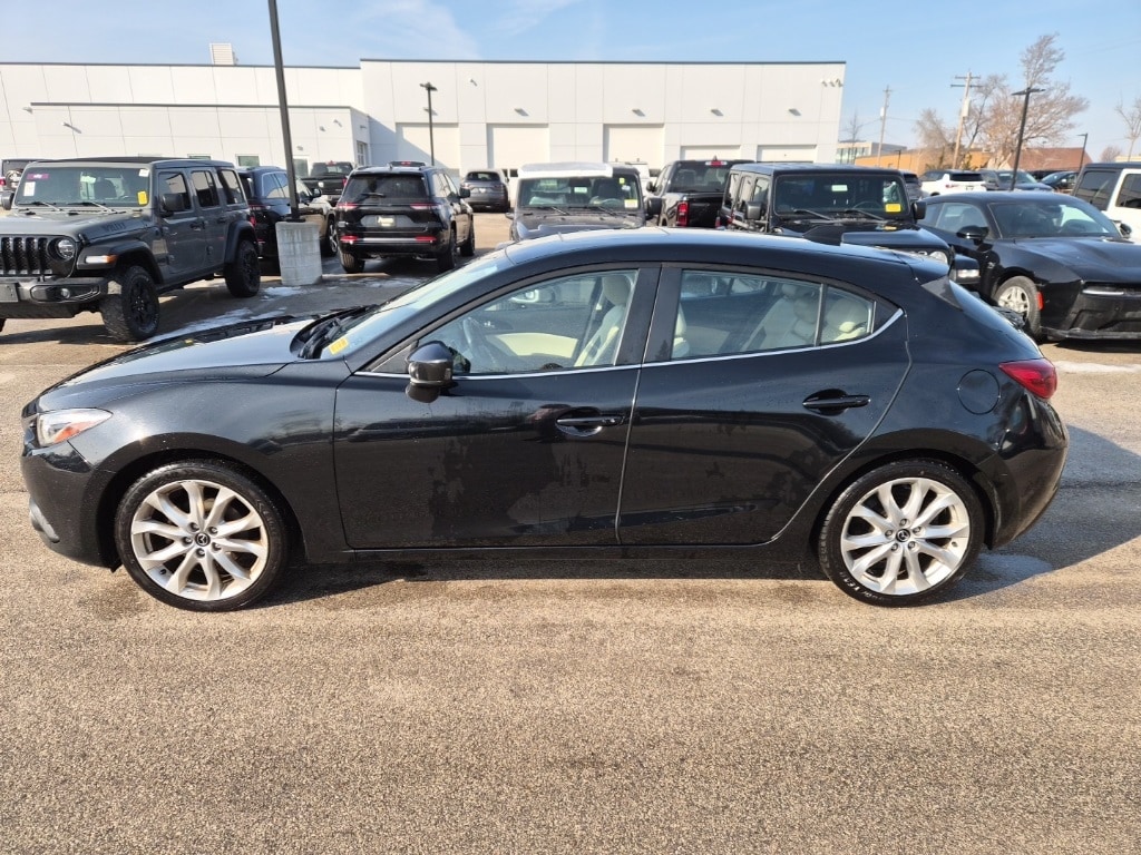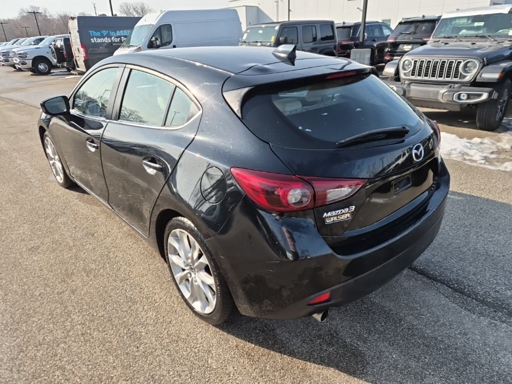 This 2014 Mazda Mazda3 s Grand Touring hatchback is finished in Jet Black Mica over an Almond interior and is powered by a SKYACTIV-G 2.5L I4 engine with i-ELOOP regenerative braking, paired with a 6-speed SKYACTIV-Drive automatic transmission and front-wheel drive.