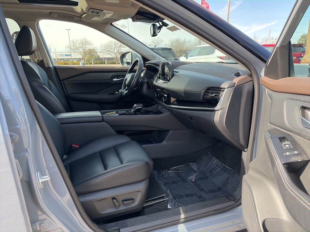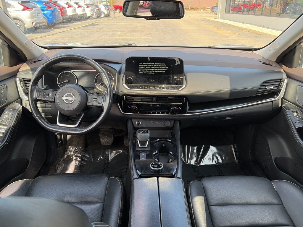 Warranty Forever is included for free with the purchase of this Boulder Gray Pearl 2023 Nissan Rogue SL AWD CVT with Xtronic 1.5L I3 Turbocharged DOHC 12V LEV3-ULEV50 201hp AWD, **ONE OWNER**, 19" Aluminum Alloy Wheels, 6 Speakers, Air Conditioning, AM/FM radio: SiriusXM, Auto High-beam Headlights, Automatic temperature control, Bose Premium Audio System, Emergency communication system: NissanConnect Services, Front, Side & Rear Sonar, Fully automatic headlights, Heated door mirrors, Heated Front Bucket Seats, Leather-Appointed Seat Trim, Motion Activated Power Liftgate, Power door mirrors, Power moonroof, Power windows, ProPILOT Assist w/Navi-link, Radio: AM/FM NissanConnect w/Navigation, Rear Door Sunshades, Rear Parking Sensors, Remote keyless entry, SL Premium Package, Speed control, Speed-Sensitive Wipers, Steering wheel mounted audio controls, Telescoping steering wheel, Tilt steering wheel, Traffic Sign Recognition, Tri-Zone HVAC, Turn signal indicator mirrors, Variably intermittent wipers.