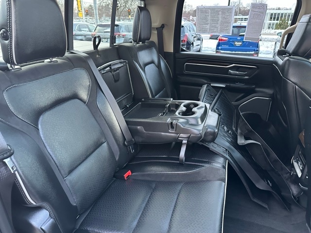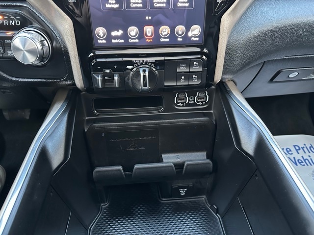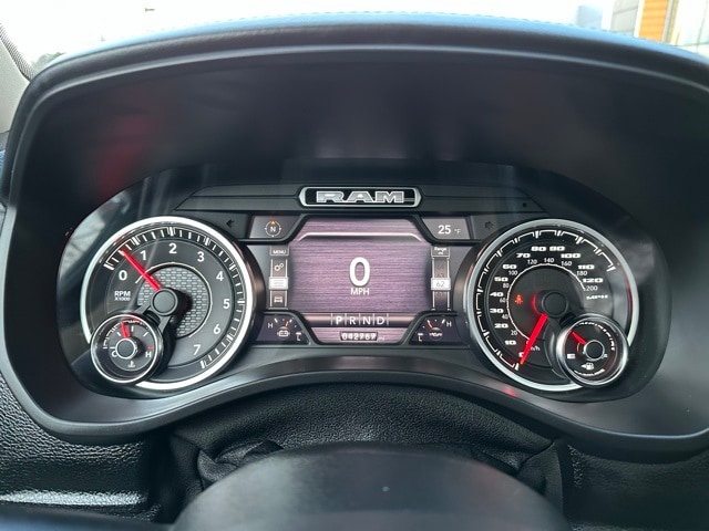 This Ram is equipped for serious work and recreation with the Trailer Tow Package, featuring an integrated trailer brake controller, Class IV hitch, 7-pin wiring harness, tow mirrors, 3.92 rear axle ratio, and a limited-slip rear differential. Additional functional upgrades include a 124-liter fuel tank, LED bed lighting, spray-in wheelhouse liners, and power-folding running boards.