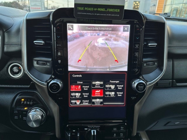 Advanced safety and driver-assist features include forward collision warning with active braking, adaptive cruise control with stop-and-go, lane keep assist, blind spot monitoring with rear cross path detection, ParkSense front and rear parking sensors, parallel and perpendicular park assist, ParkView rear backup camera, electronic stability control, hill start assist, and trailer sway control.