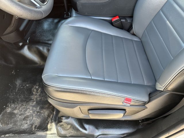 Inside, the Quad Cab offers a functional and easy-to-clean cabin with a heavy-duty vinyl 40/20/40 split bench seat, rear folding seat, vinyl floor covering, manual-adjust front seats, and a manual tilt steering column. The driver information center, analog gauge cluster, cruise control with steering wheel controls, and electronic rotary shifter keep everything simple and intuitive. Technology includes a Uconnect 3 system with a 5-inch display, integrated voice command with Bluetooth, streaming audio, multiple USB ports, and a front LCD monitor.