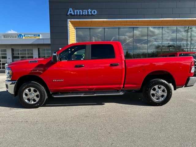 The 2024 Ram 2500 Big Horn Crew Cab 4x4 combines heavy-duty capability with modern comfort and rugged style, making it a truck built to handle any challenge. Dressed in bold Flame Red Clearcoat with a durable Diesel Gray/Black interior, this powerhouse offers refined toughness and everyday practicality in one package.