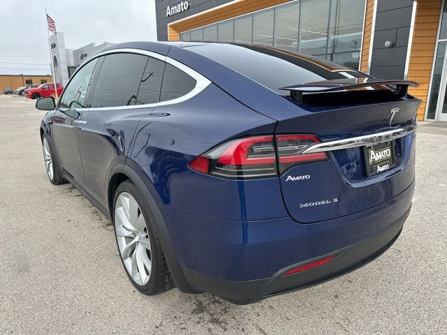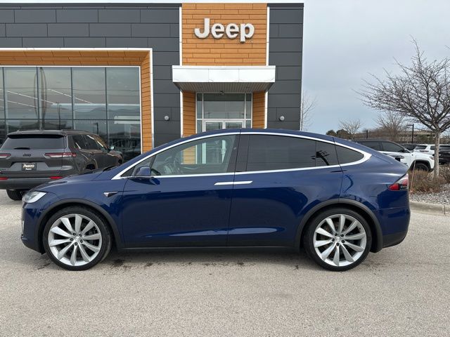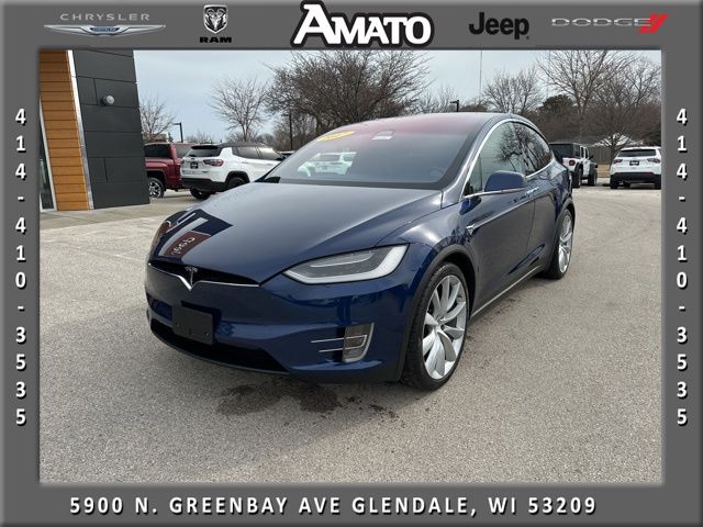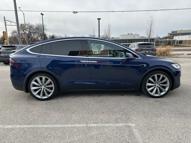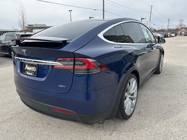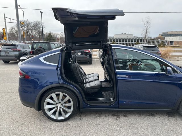 This 2017 Tesla Model X 75D is finished in Deep Blue Metallic over a Black interior and powered by a dual motor electric drivetrain paired with a 1-speed automatic transmission and automatic full-time all-wheel drive.