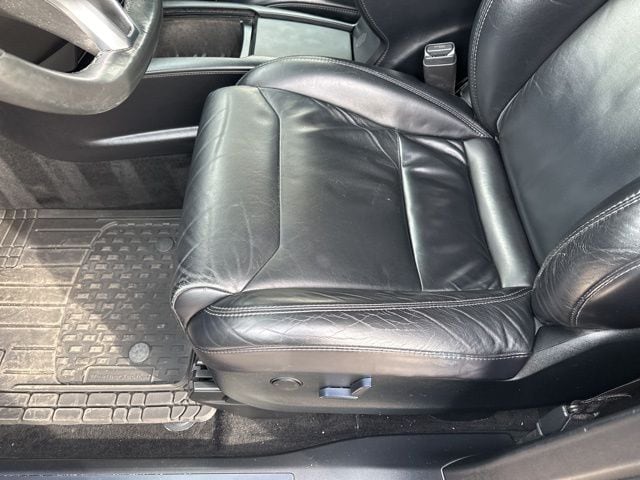 Inside, heated front seats with memory settings are complemented by Dark Ash Wood decor and a leather steering wheel with power tilt and telescoping adjustment. The cabin is centered around a 17-inch touchscreen display with AM/FM/HD/USB capability, integrated navigation with voice activation, smart device integration, mobile hotspot capability, real-time traffic display, and a nine-speaker sound system with amplifier. A driver information center, auto-dimming rearview mirror, Homelink garage door transmitter, dual 12V outlets, and a full floor console with covered storage add everyday convenience. The interior also features a rigid cargo cover, cargo net, concealed cargo storage, carpeted floor mats, and dual-zone climate control with headliner and console ducts.